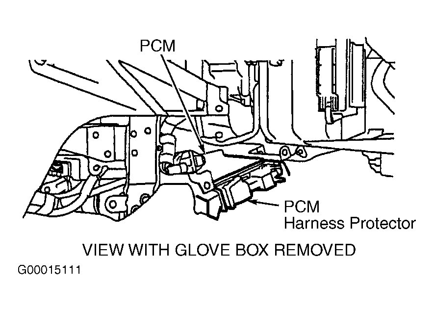 - Turn ignition off. Disconnect ECM 116-pin harness connector. ECM is located under instrument panel. See Figure. Check continuity between ground and ECM harness connector terminals No. 48, 57, 106 and 108 (Black wires). See Figure. Continuity should exist. Also, check circuits for short to voltage. If problem is found, repair as necessary. After repair, retest system.