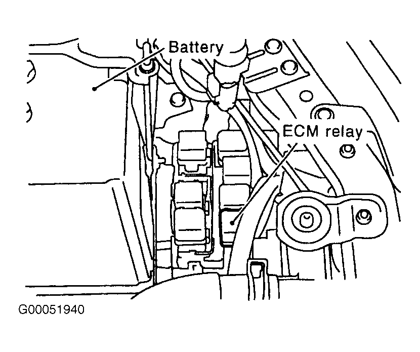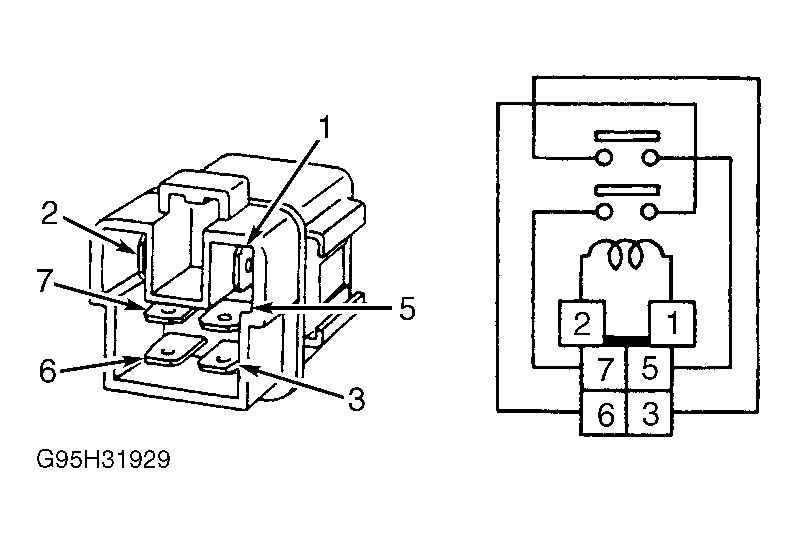 - Working with ECM relay, apply battery voltage and ground to terminals No. 1 and 2. See Fig 2. When battery voltage is applied, continuity should exist between terminals No. 3, 5, 6 and 7. When battery voltage is removed, continuity should not exist. If relay tests okay, go to next step. Replace relay, if test values are not as specified.