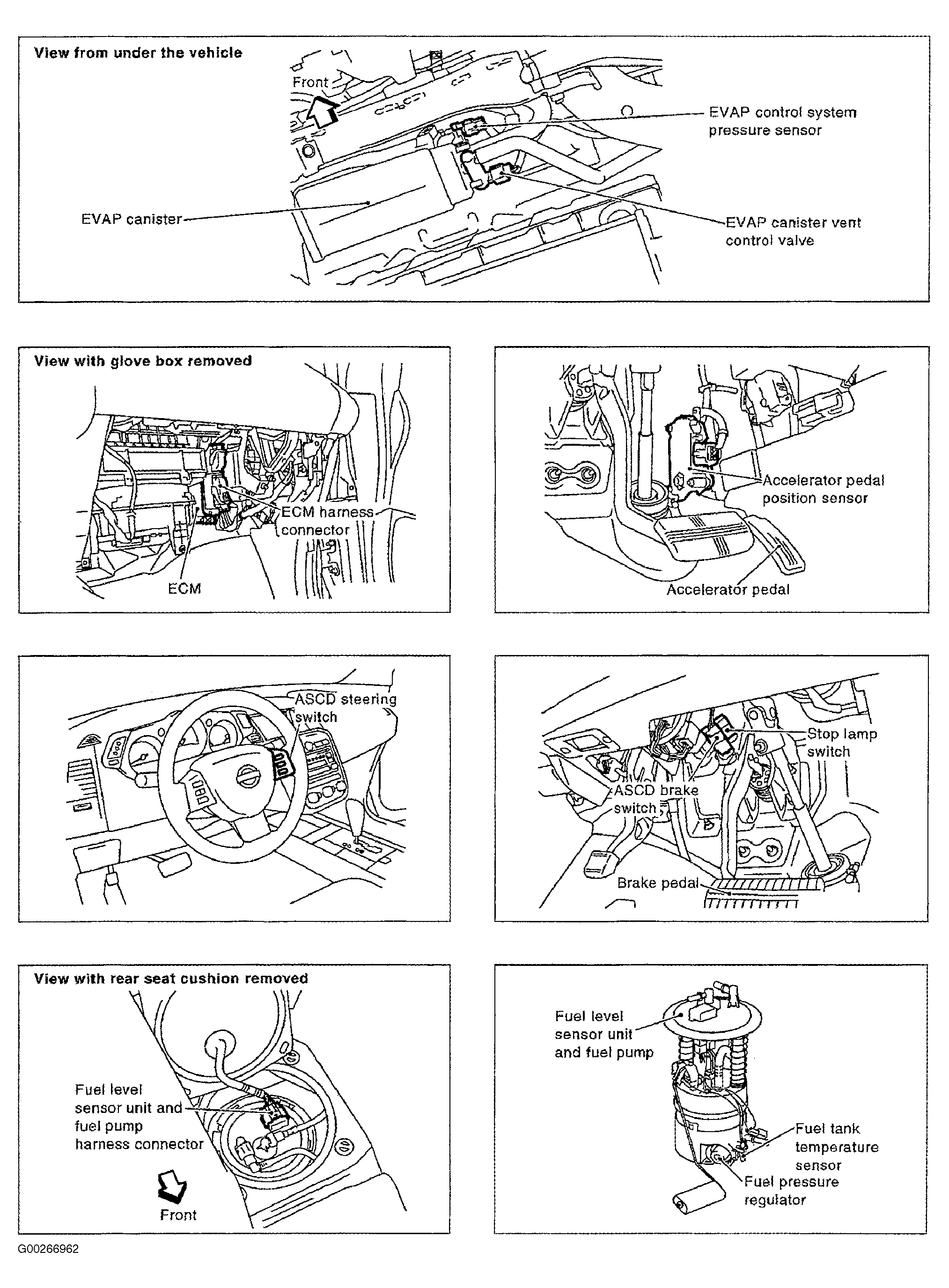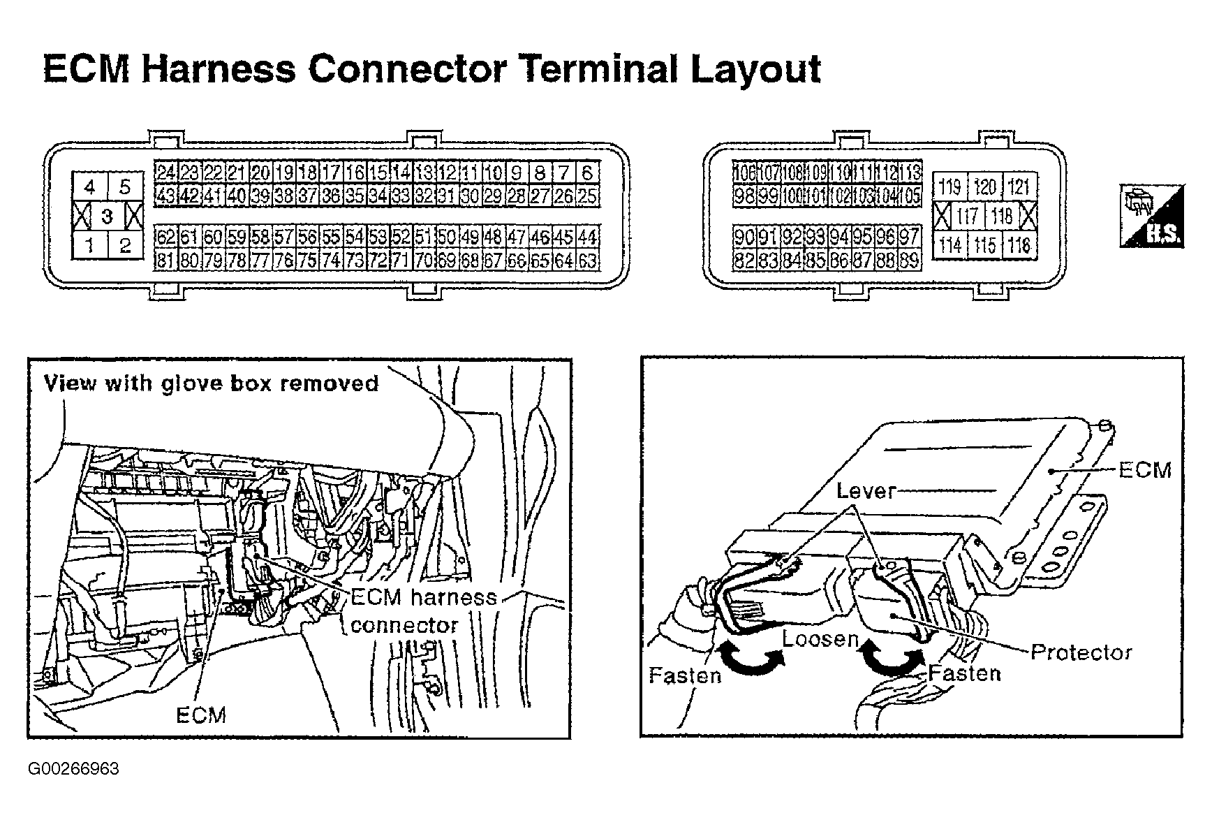 For engine control system component locations, see Figure-Figure . For ECM location, connector and terminal view, see Figure. For removal and installation of components, see appropriate REMOVAL & INSTALLATION article.