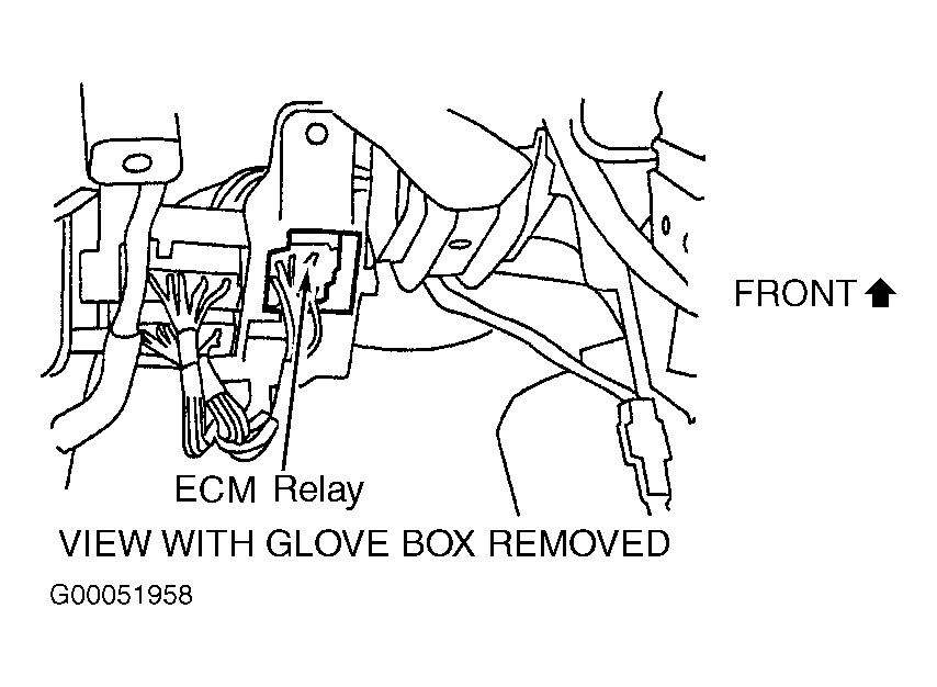 ECM Terminal No. ECM Relay Terminal No. Wire Color 12 7 Red 109 & 111 5 Red/Green - Working with ECM relay, apply battery voltage and ground to terminals No. 1 and 2. See Figure. When battery voltage is applied, continuity should exist between terminals No. 3, 5, 6 and 7. When battery voltage is removed, continuity should not exist. If relay tests okay, go to next step. Replace relay, if test values are not as specified.