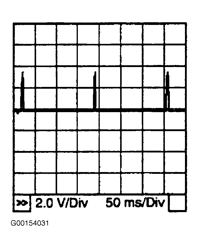 - Start engine and allow to idle. Backprobing at ECM, connect an oscilloscope between ground and ECM terminals No. 5, 6, 7, 15, 16 and 17 and read waveform signal voltage. See Figure. Compare waveform to waveform shown in Figure. If waveform is the same, testing is complete. If waveform is not the same, go to step 14.