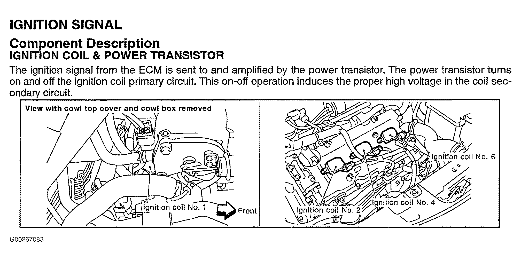 For ignition signal circuit system and component testing, see Fig 1-Fig 12 . For diagnosis of ECM power supply circuit, see POWER & GROUND CIRCUITS (MURANO) . For intermittent problem, see INTERMITTENTS in TROUBLE SHOOTING - NO CODES article.