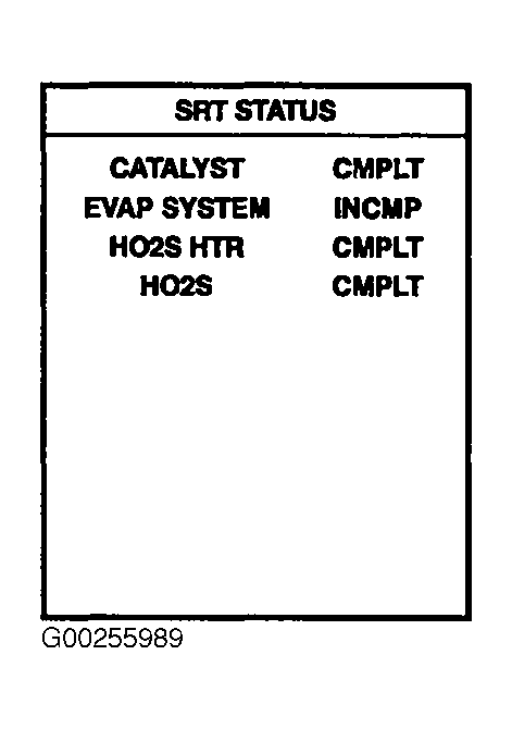 - For items whose SRT codes are set, a "CMPLT" is displayed on the CONSULT-II screen; for items whose SRT codes are not set, "INCMP" is displayed. See Fig 1 .