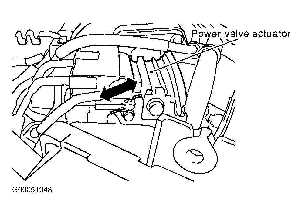 6. Turn ignition off. Check for cracks, clogging, poor or disconnected vacuum hoses and tubes between intake manifold and power valve actuator. If no problem is found, go to next step. If problem is found, repair or replace hoses as necessary.
