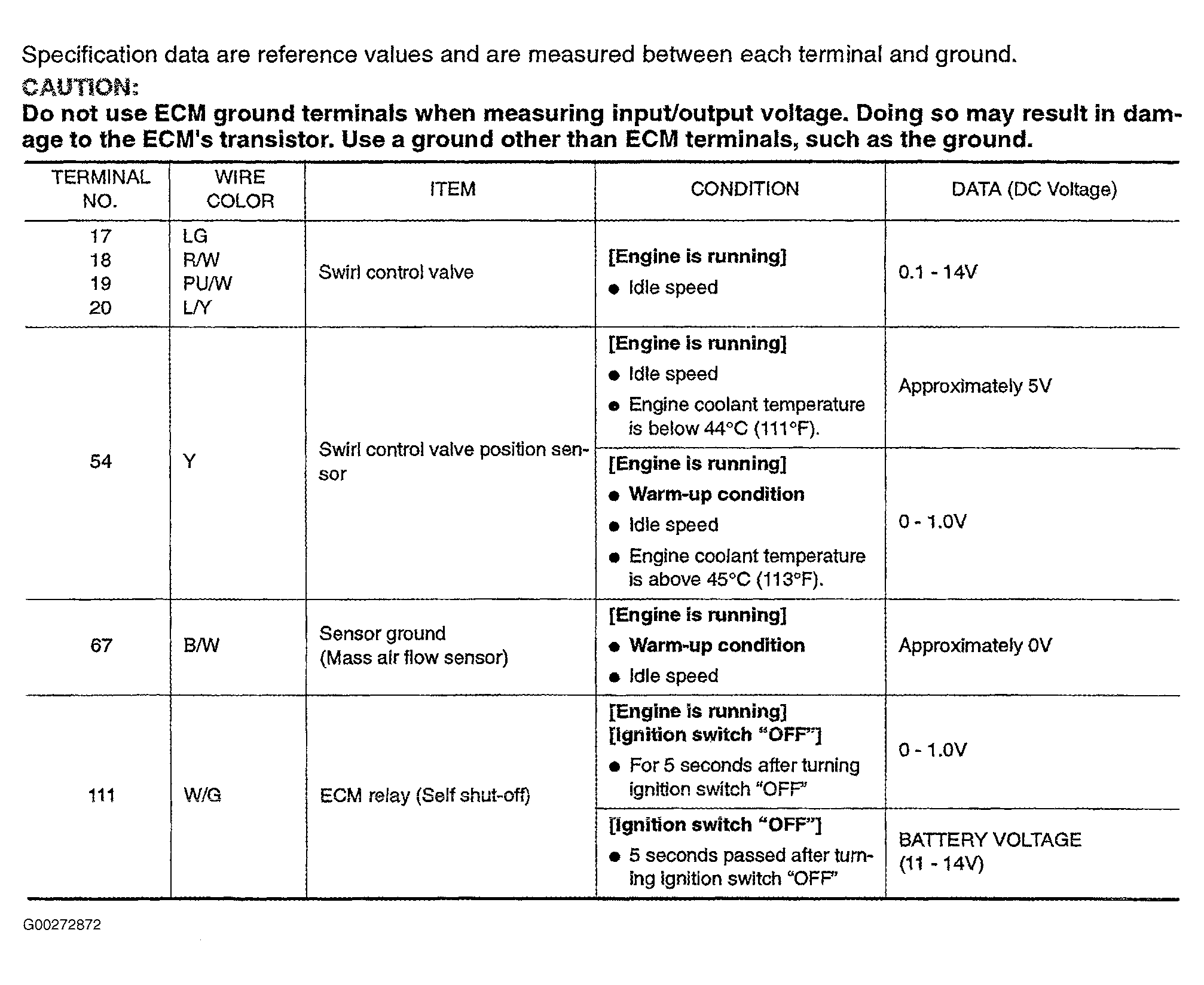 For engine control system component locations, see Figure-Figure . For ECM location, connector and terminal view, see Figure. If problem is intermittent, see INTERMITTENTS in TROUBLE SHOOTING - NO CODES article. For removal and installation of components, see appropriate REMOVAL & INSTALLATION article.