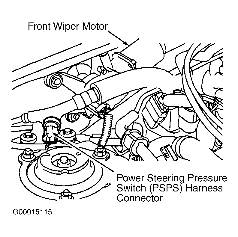 For test and diagnosis of power steering pressure switch, see Fig 1-Fig 3 . For locating power steering pressure switch and circuit wiring diagram, see Figure-Fig 4 . If no problem is indicated at this time, problem may be intermittent. See INTERMITTENTS in TROUBLE SHOOTING - NO CODES article. For removal and replacement procedures, see appropriate REMOVAL & INSTALLATION article.