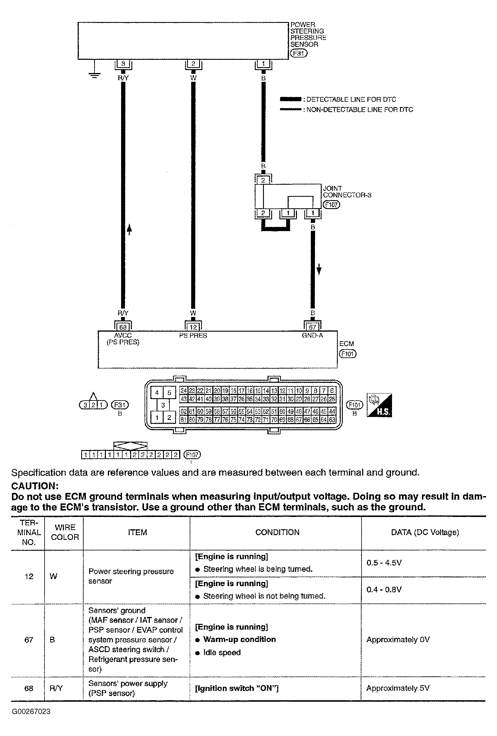 For test and diagnosis of power steering pressure switch, see Fig 1-Fig 3 . For locating power steering pressure switch and circuit wiring diagram, see Figure-Fig 4 . If no problem is indicated at this time, problem may be intermittent. See INTERMITTENTS in TROUBLE SHOOTING - NO CODES article. For removal and replacement procedures, see appropriate REMOVAL & INSTALLATION article.