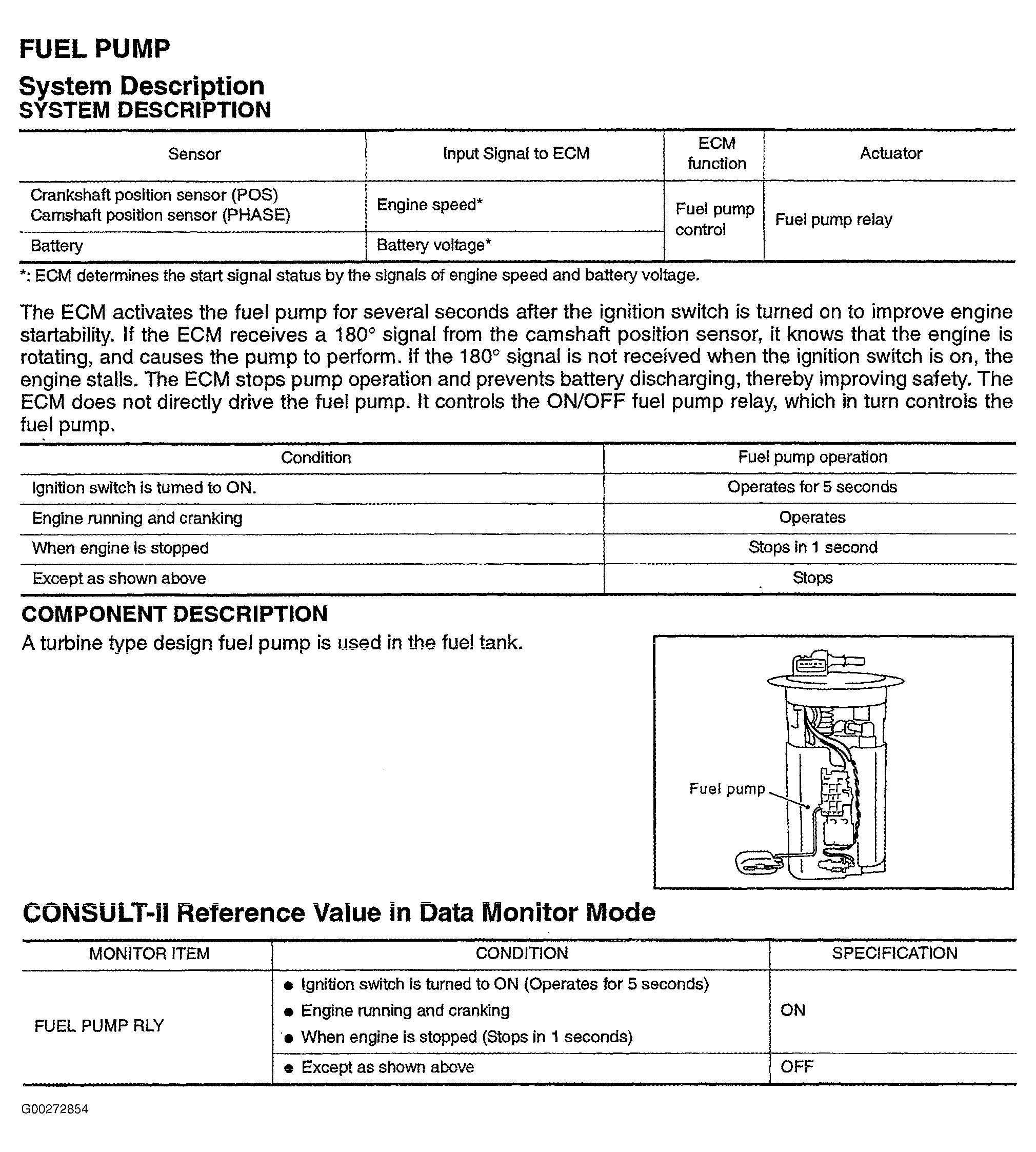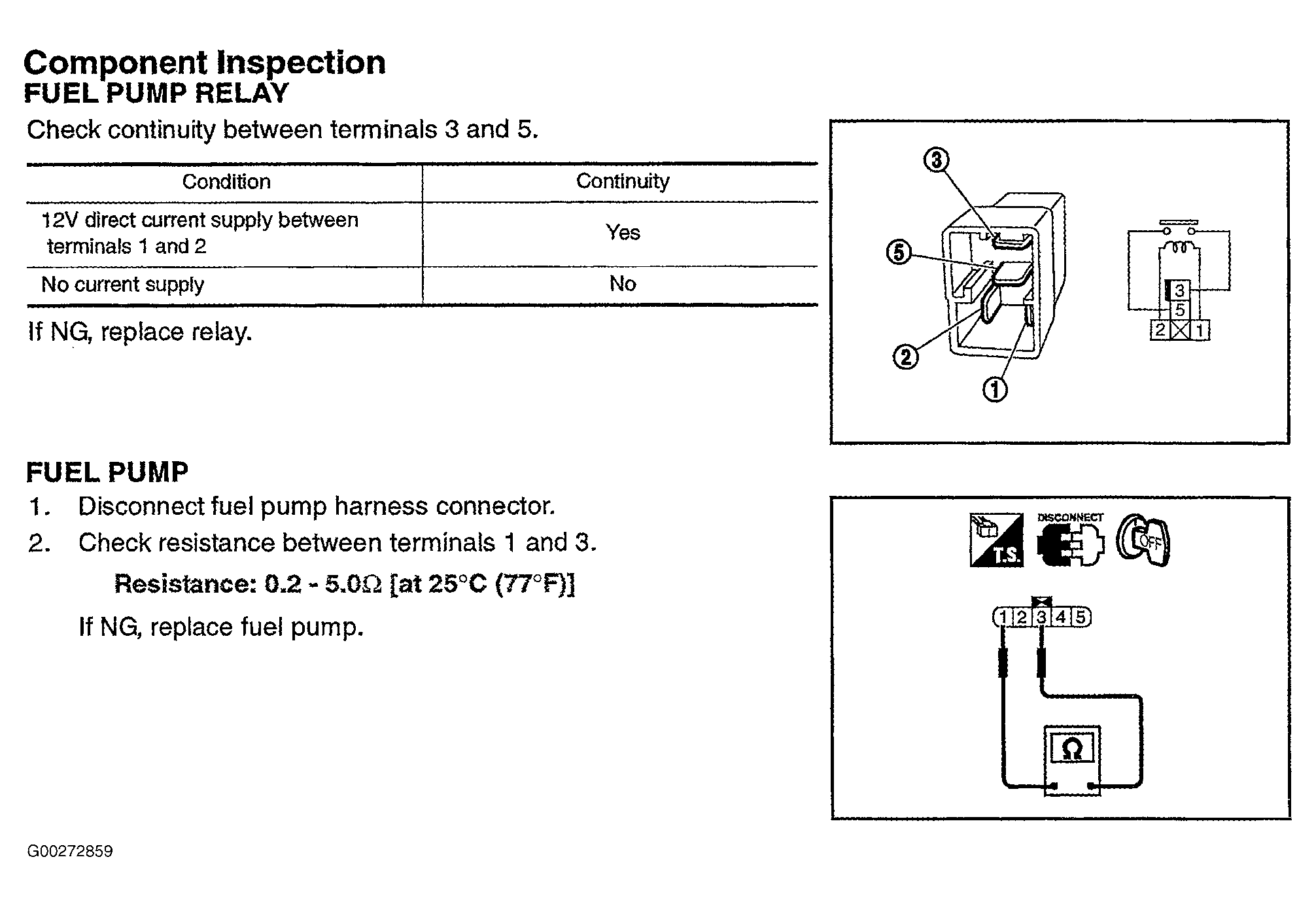 For fuel pump control system diagnosis and testing procedure, see Fig 1-Fig 6 . To check fuel pump, see FUEL PUMP . For relay location, see ECM & FUEL PUMP RELAY LOCATIONS table. If no problem is indicated at this time, problem may be intermittent. See INTERMITTENTS in TROUBLE SHOOTING - NO CODES article. For component removal and installation procedures, see appropriate REMOVAL & INSTALLATION article.