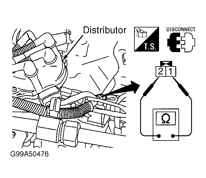 - Check ignition coil. See IGNITION COIL . If ignition coil tests okay, go to next step. If ignition coil does not test okay, replace distributor assembly.
