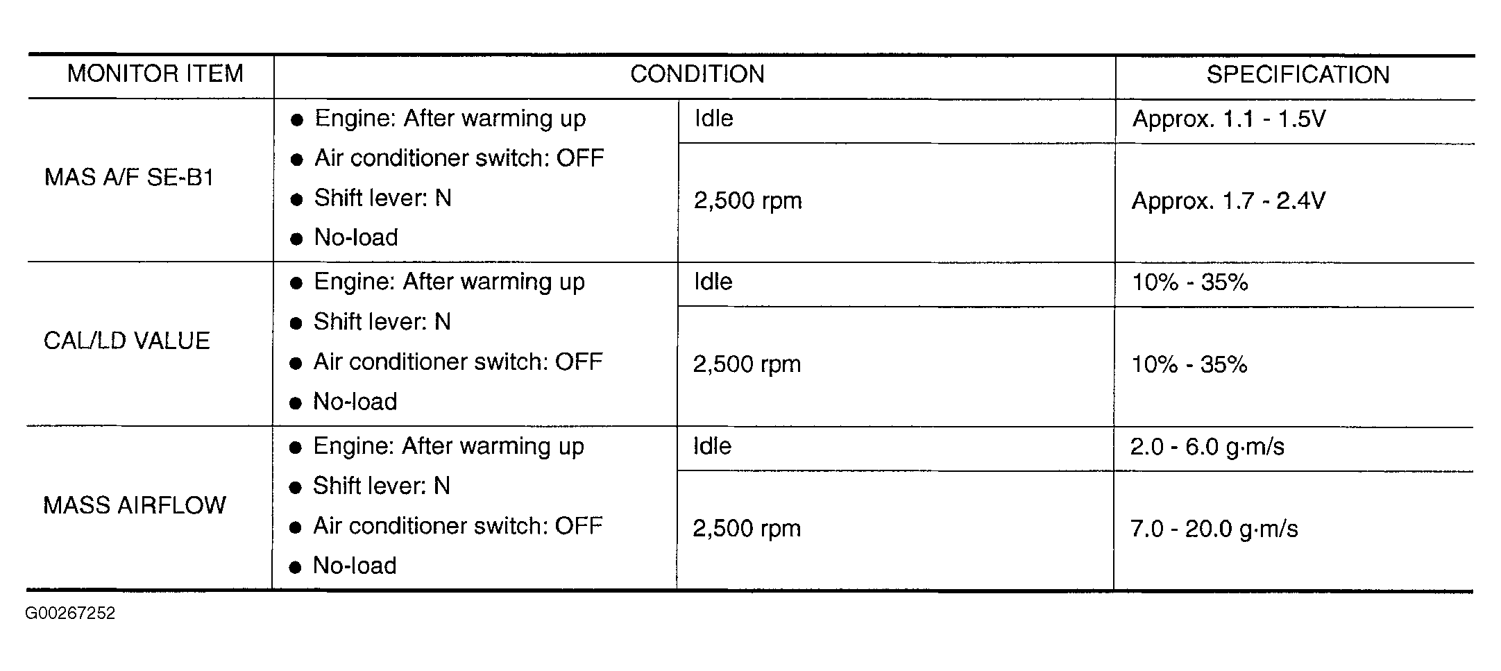 Fig 1: DTCs P0101, P0102 Or P0103 Data Monitor Mode Reference Values