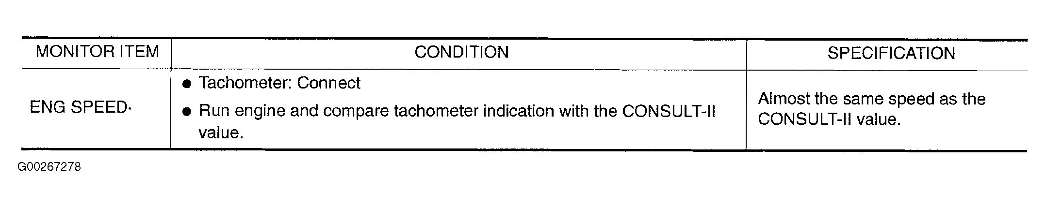 Home >> Nissan-Datsun >> 2003 >> Sentra SE-R, Automatic >> Repair and Diagnosis >> External Pages >> Different car >> Section 192 (Engine Controls - Self-Diagnostics) >> Diagnostic Tests >> DTC P0335: Crankshaft Position Sensor (Pos) Circuit >> CONSULT-II Reference Value In Data Monitor Mode