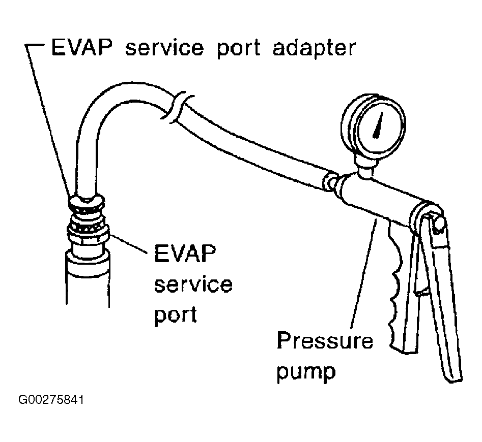 Never use compressed air. Doing so may damage the EVAP system. Do not start engine. Do not exceed 0.6 psi (4.12 kPa).