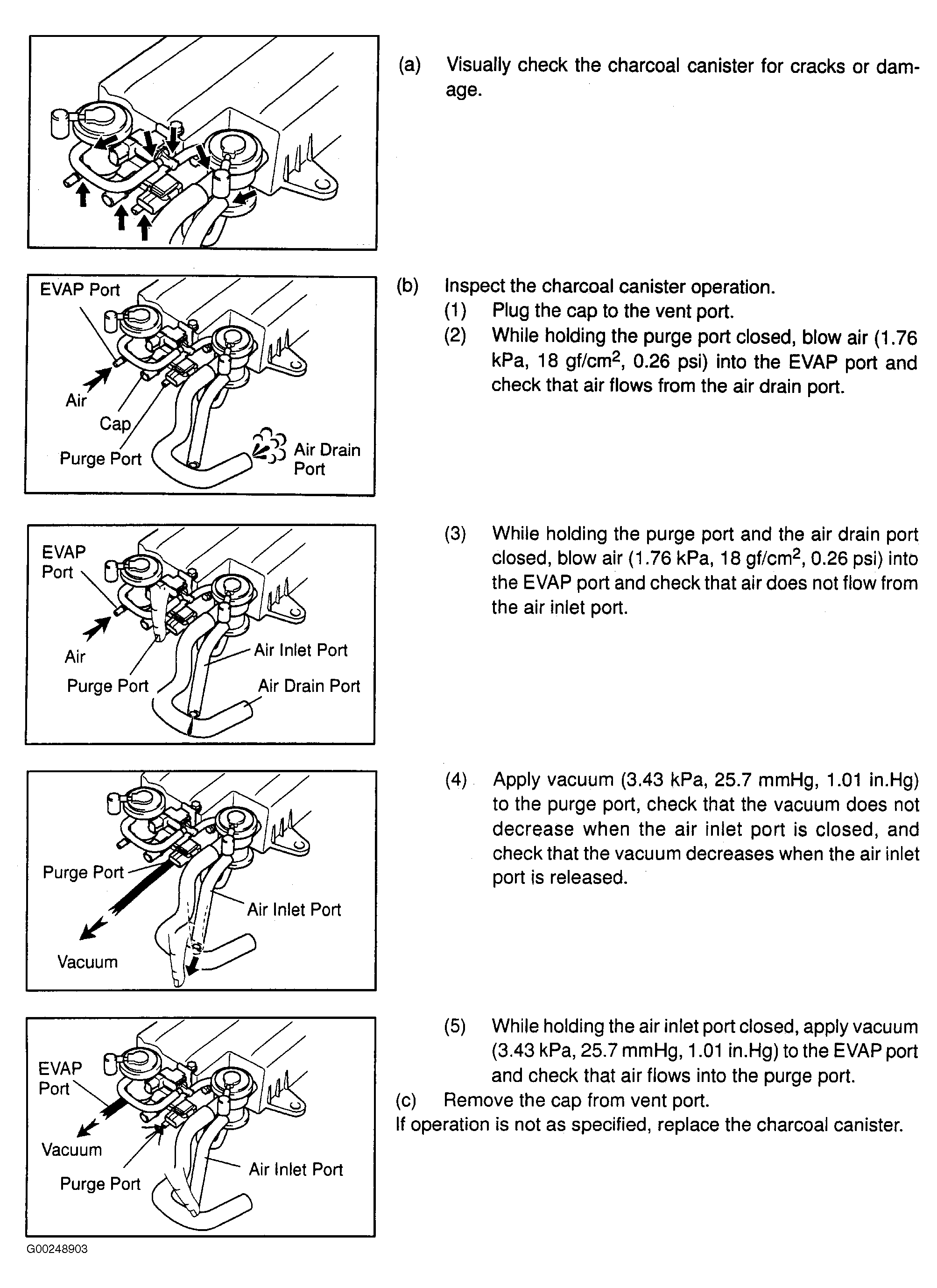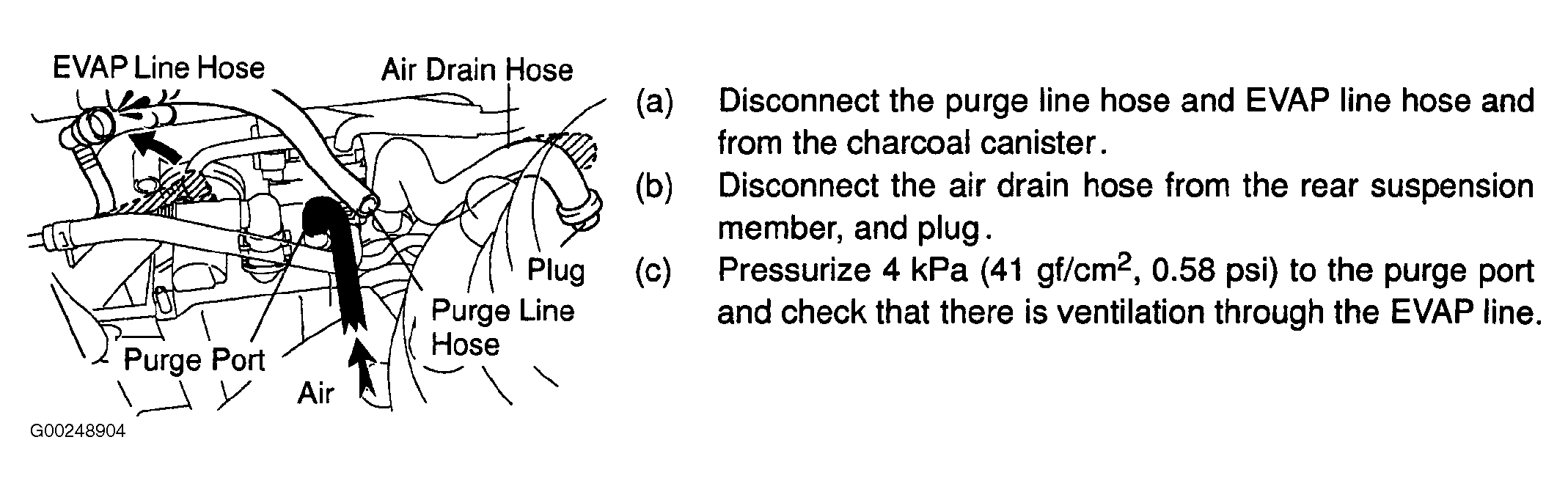 5. Check whether hose close to fuel tank has been modified, and check whether there are signs of any accident near fuel tank or charcoal canister. See Figure. Repair as necessary. If okay, go to next step.