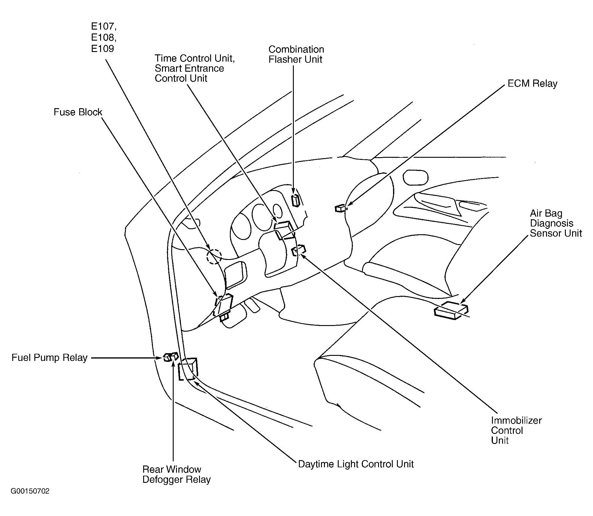 | Smart Entrance Control Unit | Behind center of dash. See Figure. |