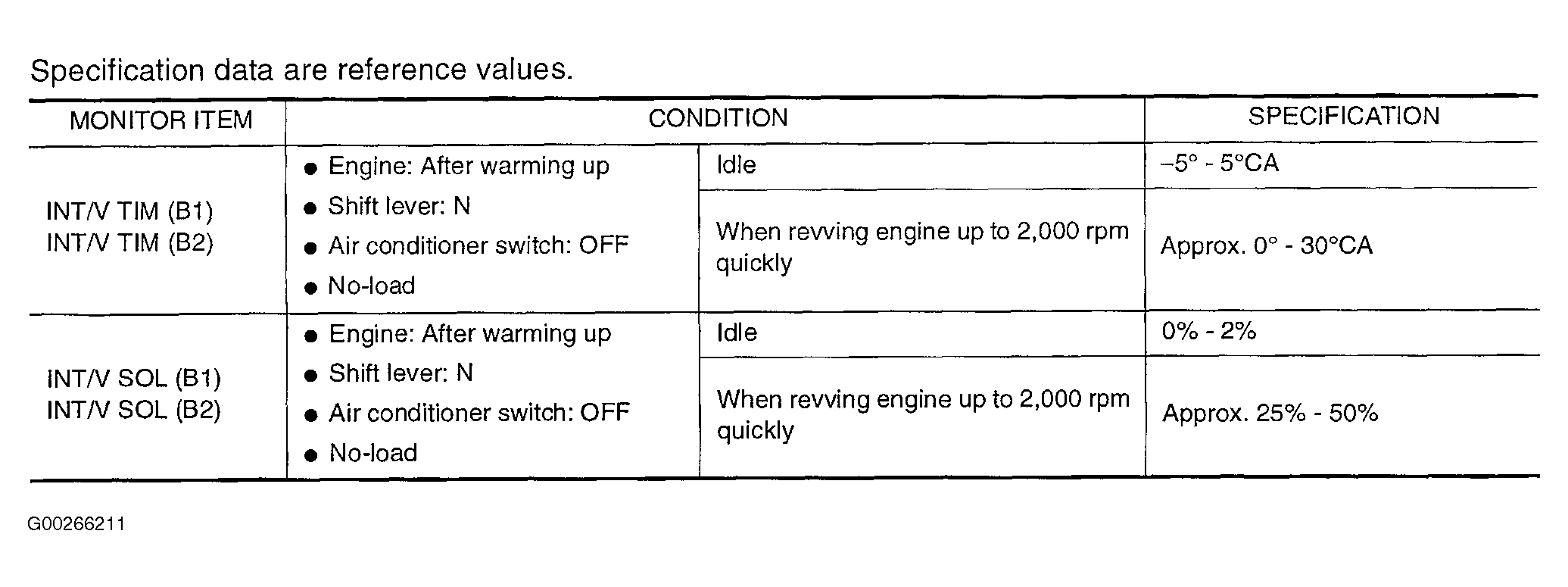For CONSULT-II reference value in data monitor mode, see Fig 1 or Fig 2