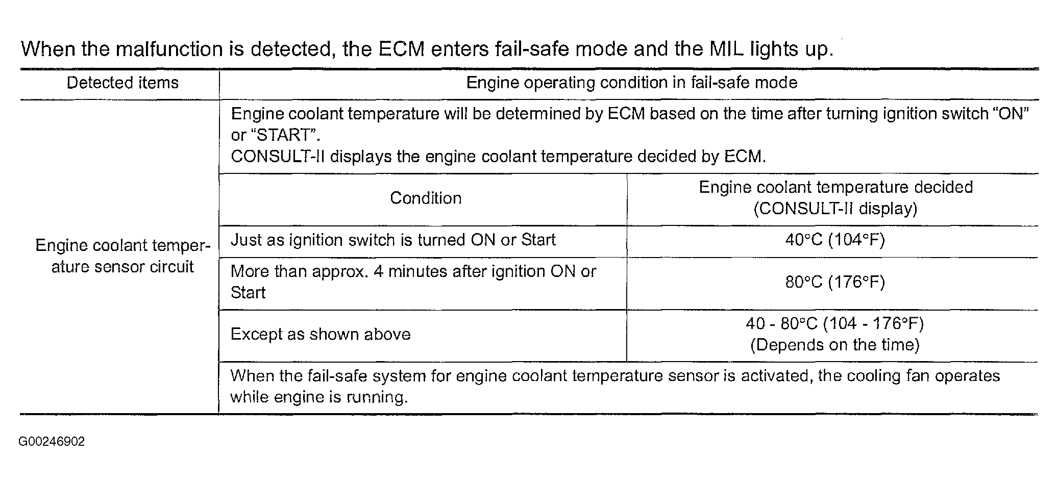 Fig 1: Identifying Fail-Safe Mode For DTC P0117 Or DTC P0118: Engine Coolant Temperature Sensor