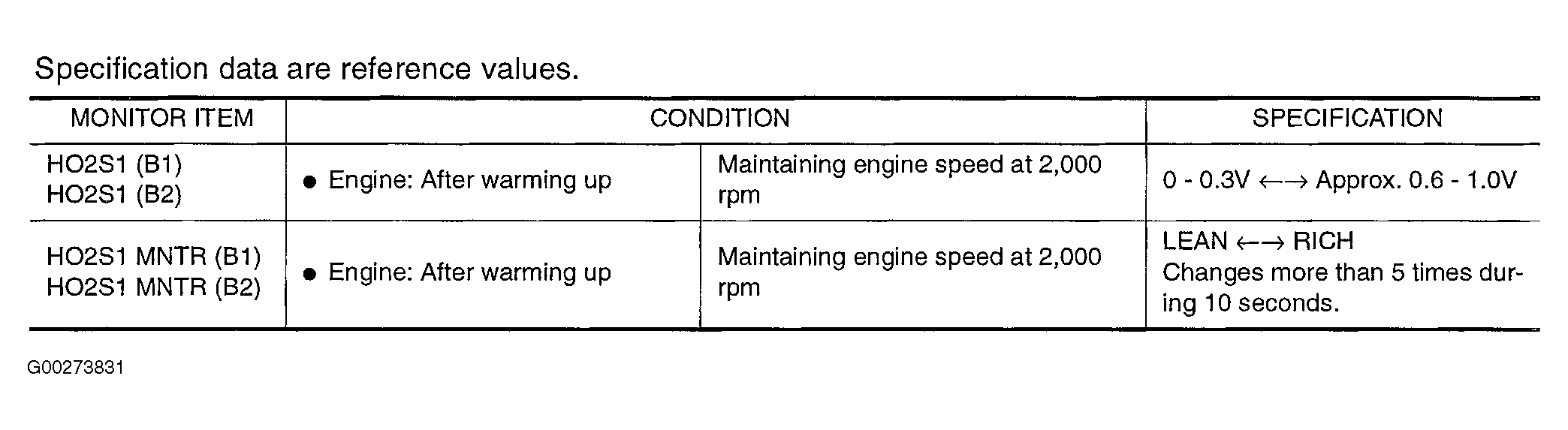CONSULT-II Reference Value In Data Monitor Mode