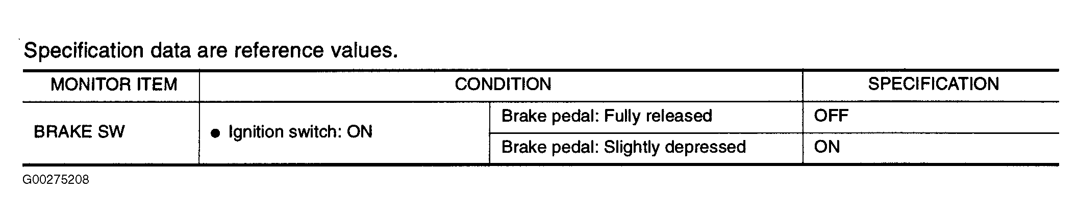 Fig 1: CONSULT-II Reference Value In Data Monitor Mode For DTC P1805: Brake Switch