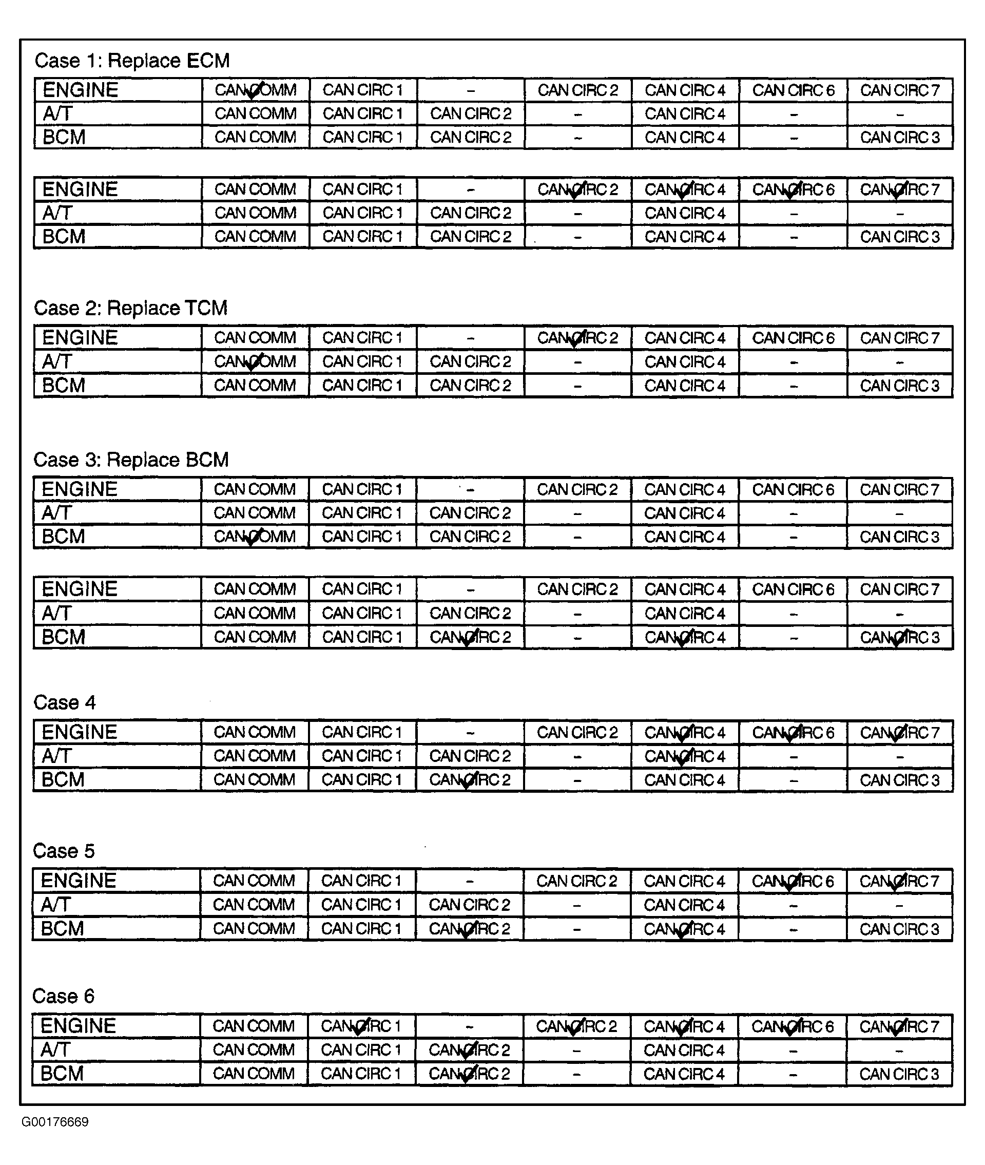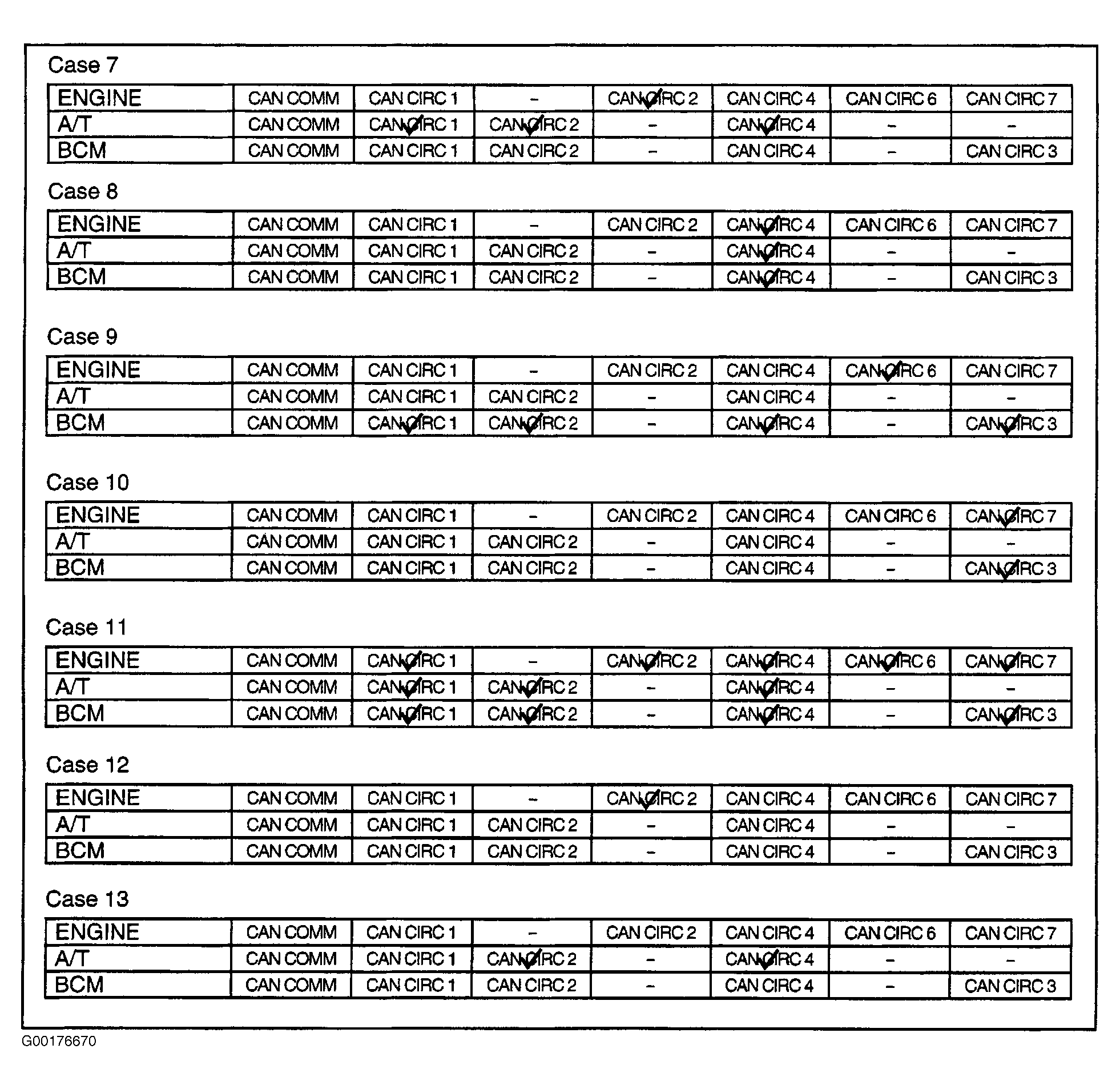 Check CAN communication circuit. See CAN COMMUNICATION CIRCUIT CHECK under SYSTEM TESTS. - Case 12