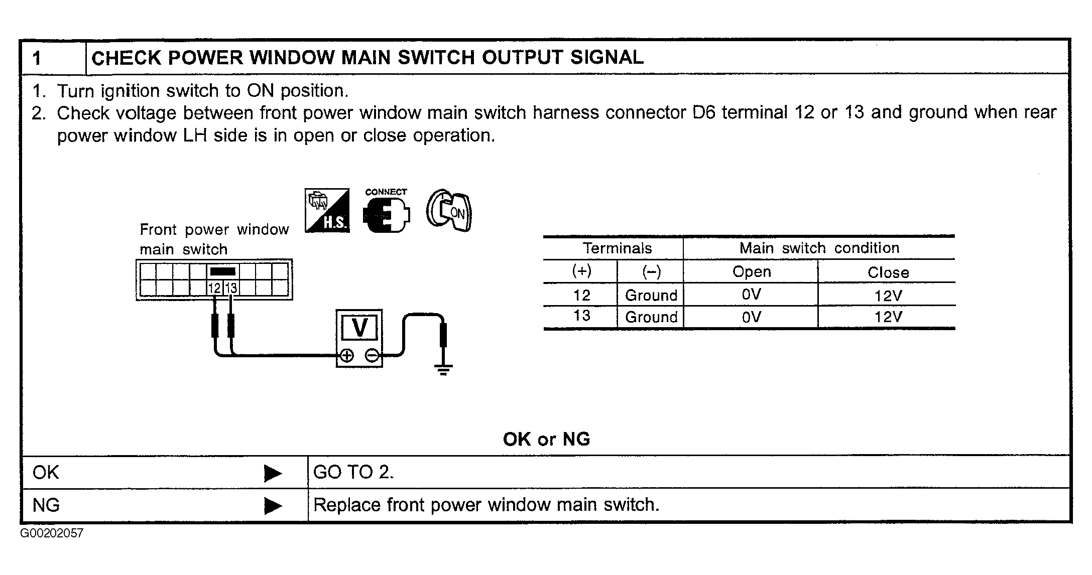 Fig 2: Performing Main Switch Operation Check, Left Rear Window, Step 2 (2002 Model)