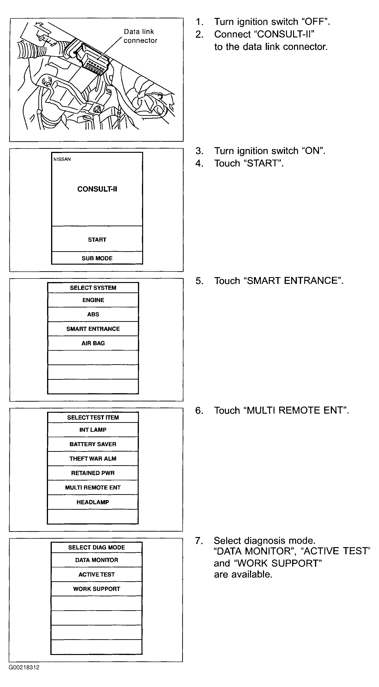 Home >> Nissan-Datsun >> 2004 >> Sentra SE-R >> Repair and Diagnosis >> External Pages >> Different car >> Section 171 (Remote Keyless Entry System) >> Trouble Shooting >> Consult-II Inspection Procedure >> Notes