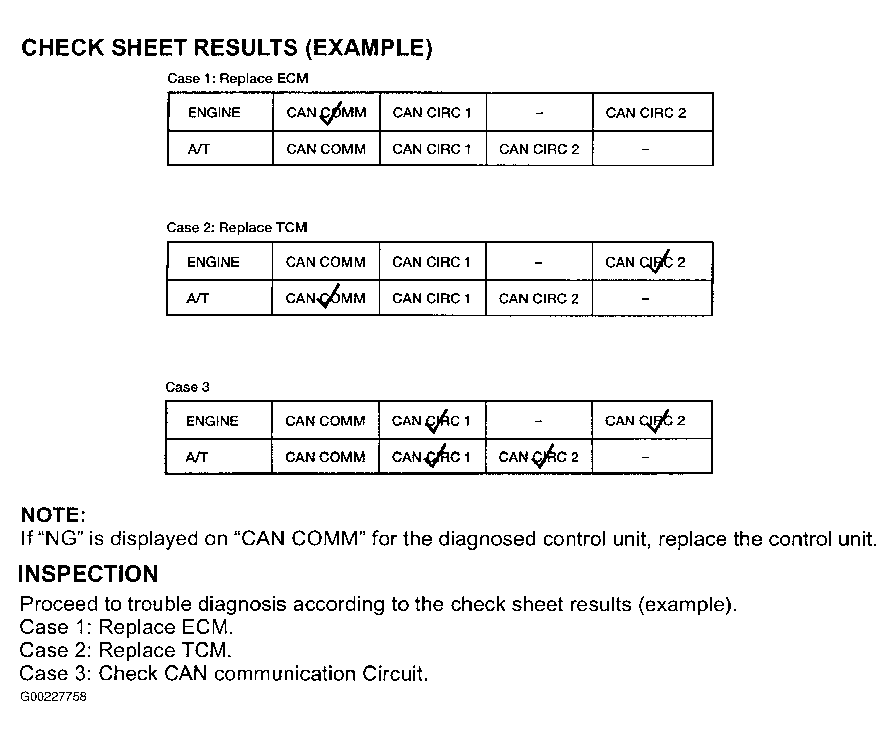 If "NG" is displayed on "CAN COMM" for the diagnosed control unit, replace the control unit.