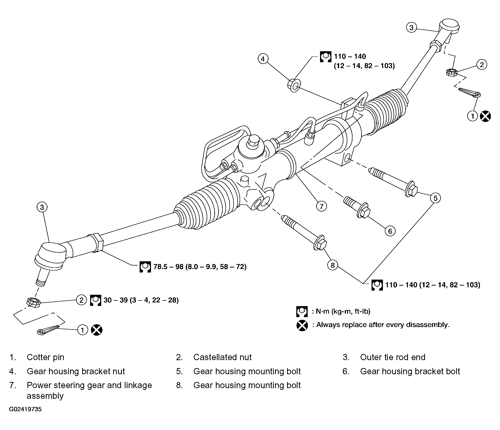 3. Tighten the outer tie-rod lock nuts to specified torque.