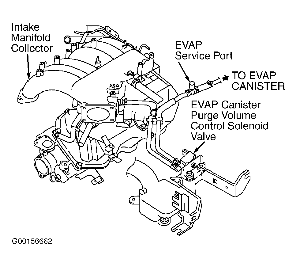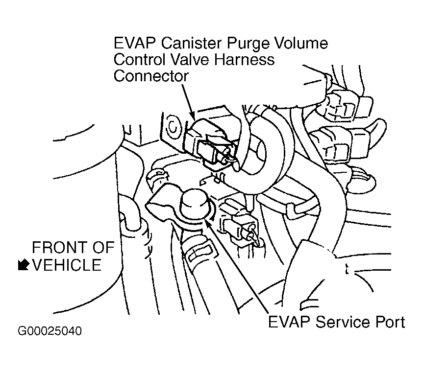 - Connect EVAP Service Port Adapter (J41413-OBD) to EVAP service port. See Figure or Figure . Connect a suitable pressure pump with hose and gauge to adapter.