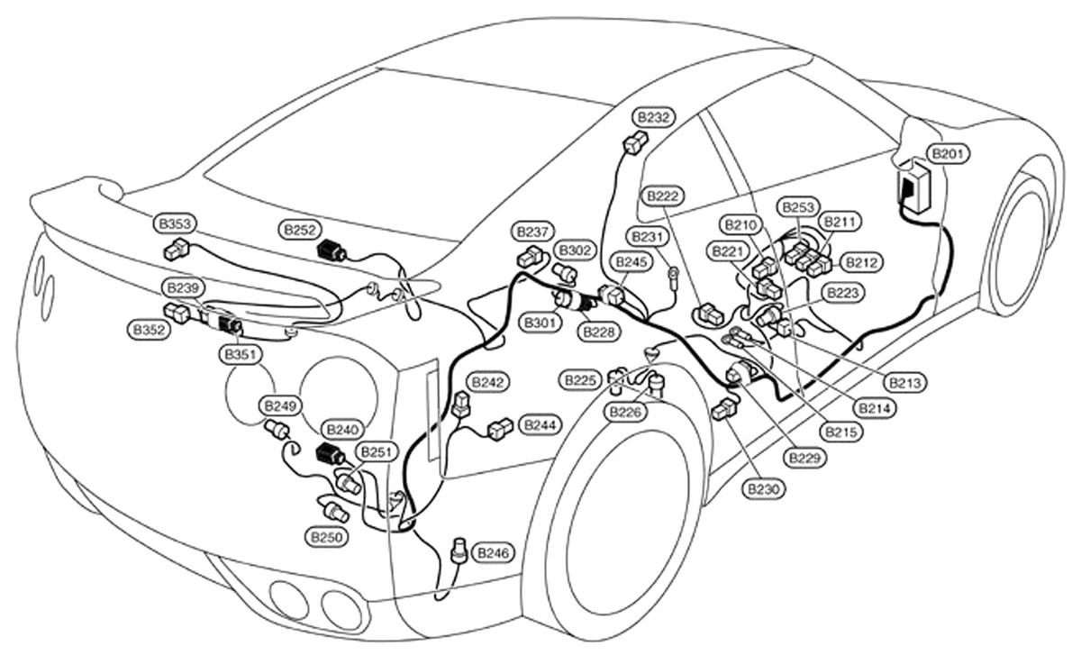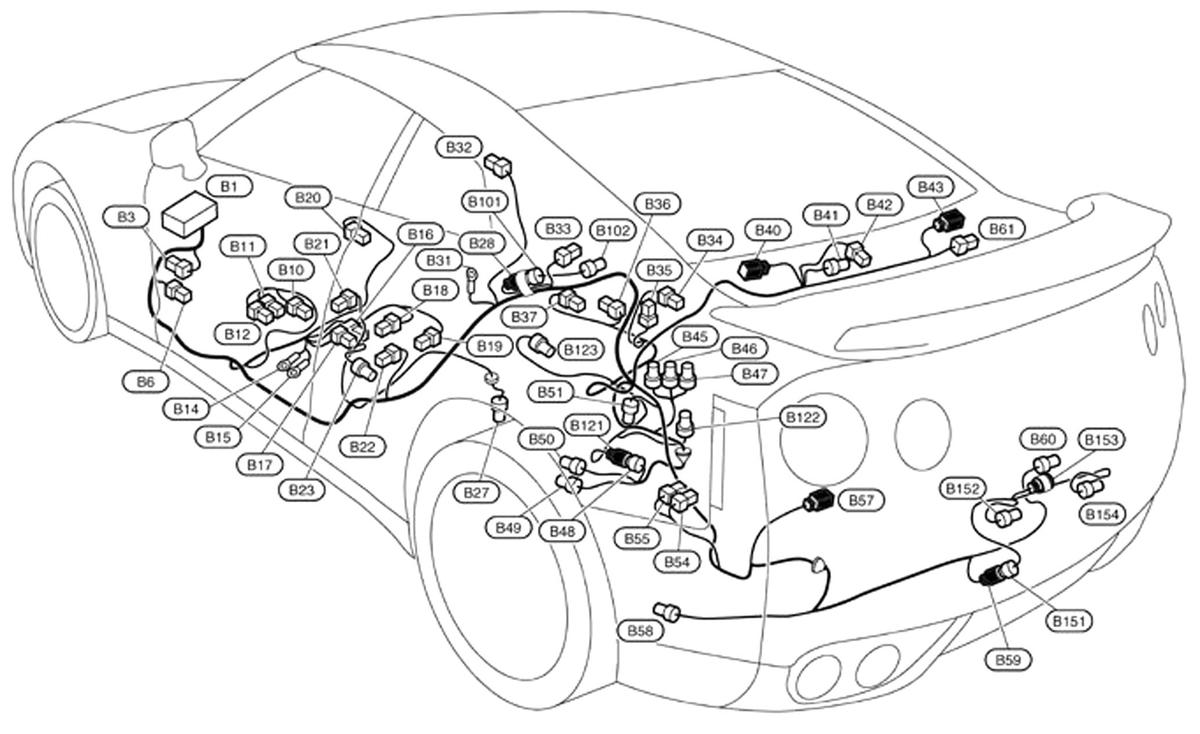 | TCM (Transmission Control Module) (B45) | Left side of luggage compartment. See Figure. |