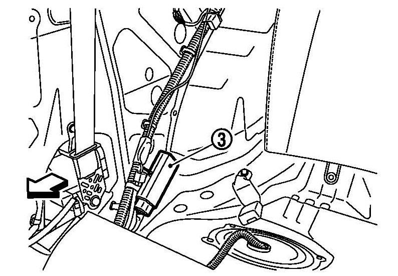 | Fuel Pump Control Module (FPCM) (3) | Base of right "B" pillar. See Figure. |