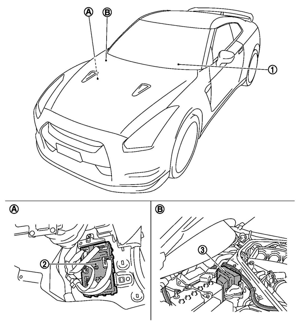 | BCM (Body Control Module) (2) | Right rear corner of engine compartment. See Figure. |