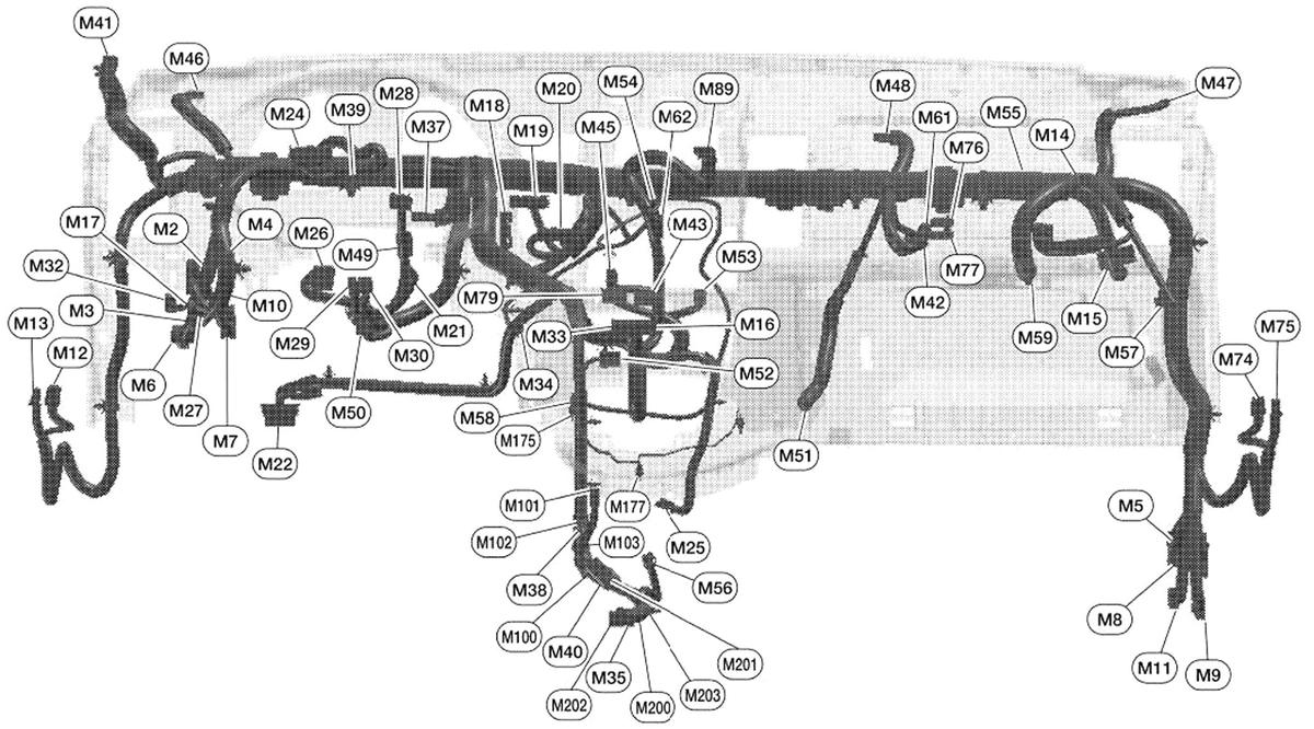 | Fan Control Amp. (M52) | Behind right side of dash. See Figure. |