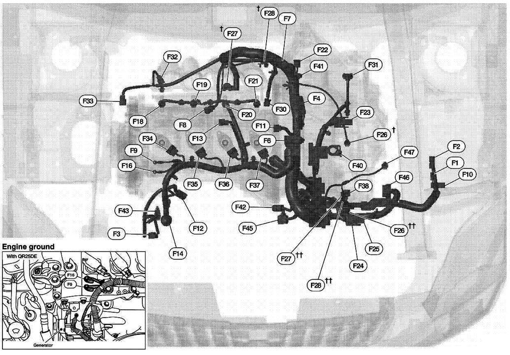 | Fuse Block (J/B) | Behind left end of dash. See Figure. |