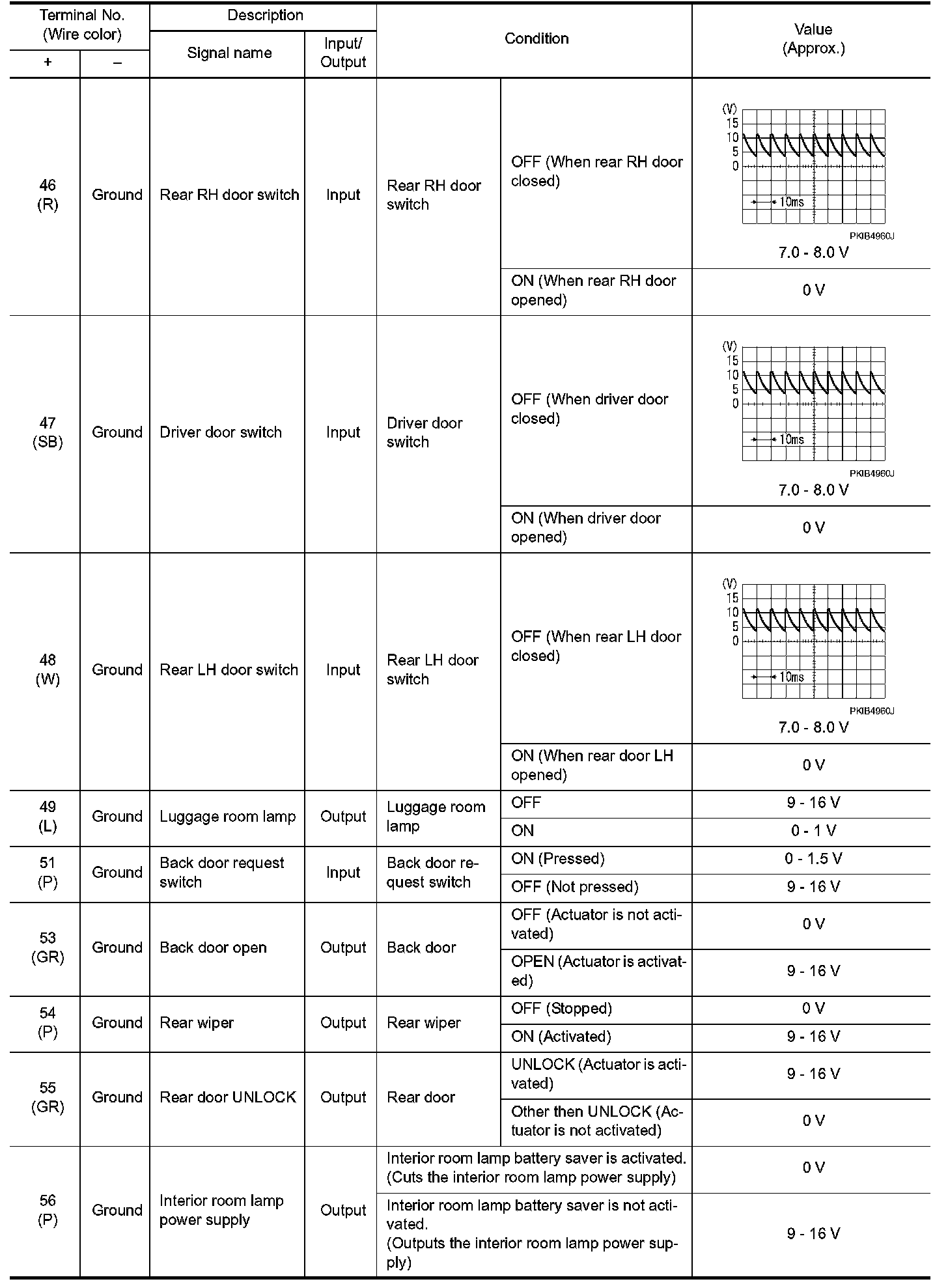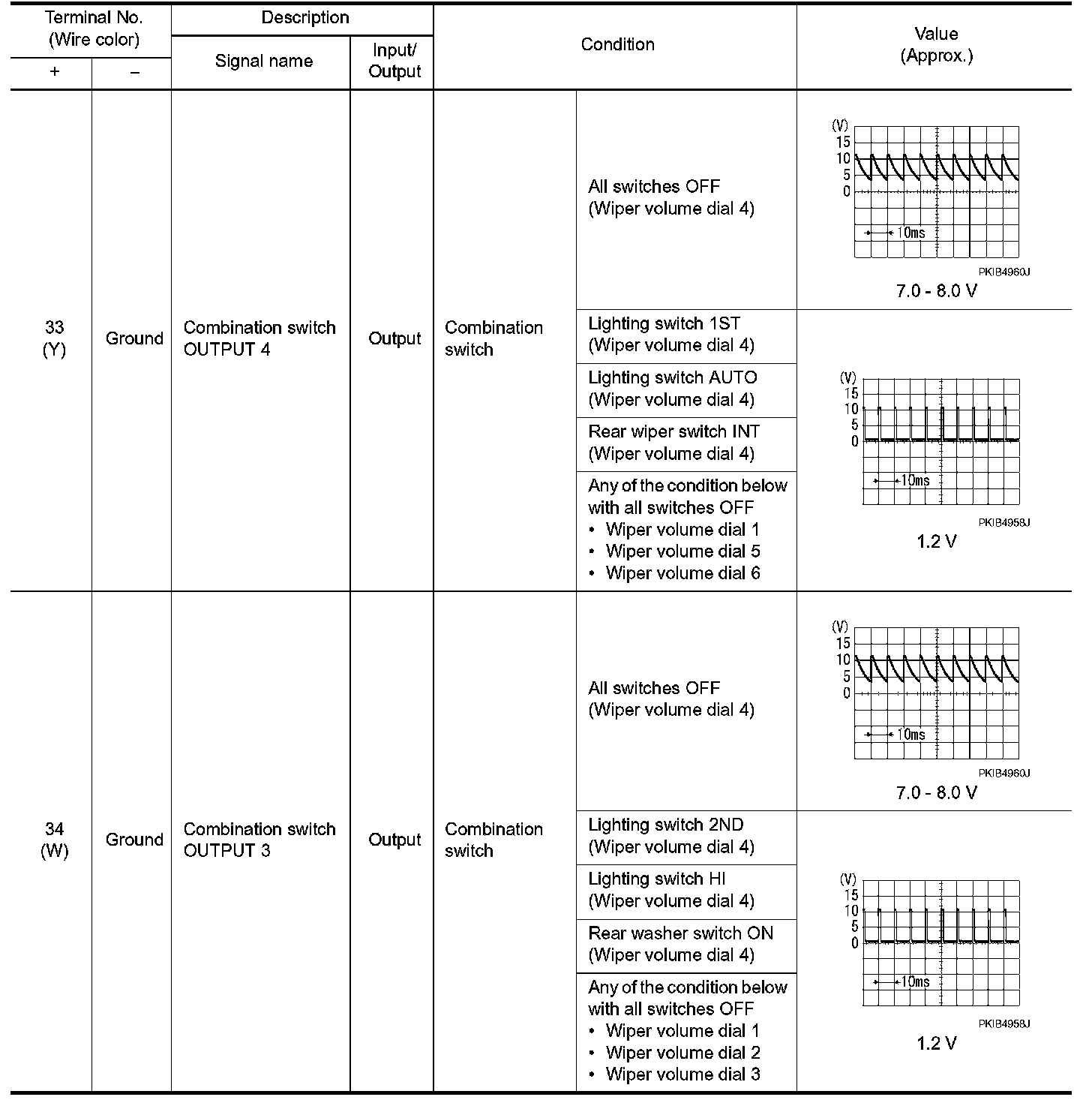 Pinout Values and Diagnostic Parameters