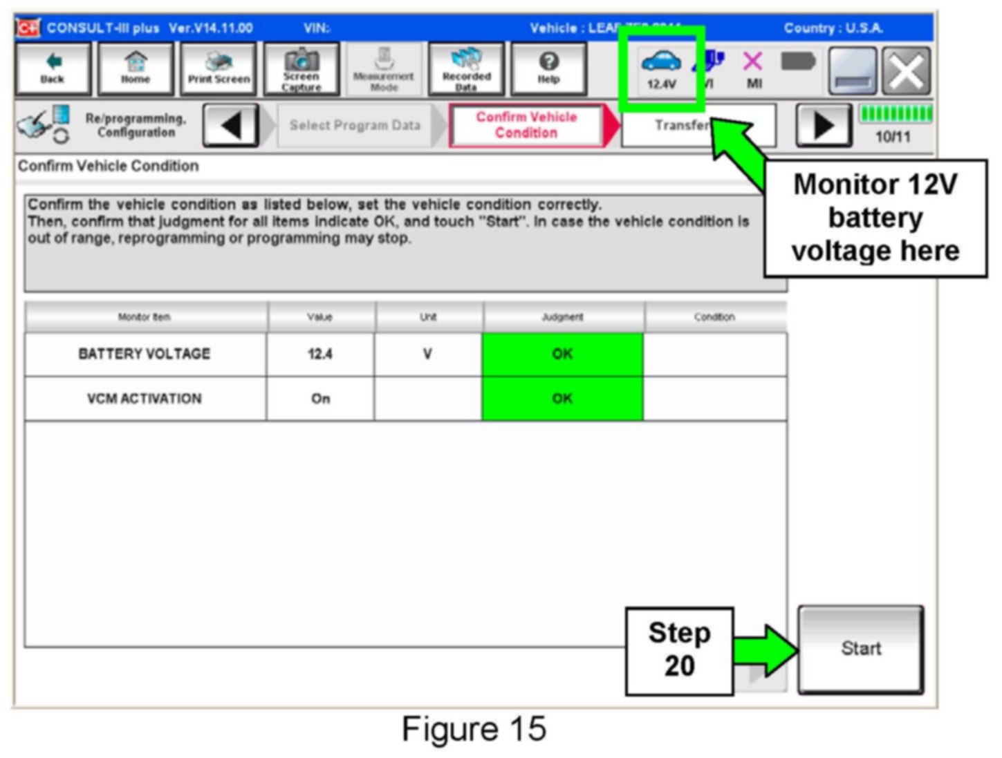 For reprogramming to continue, vehicle 12V battery voltage must stay within 12 volts and 15.5 volts. Make sure the voltage level is sufficient.