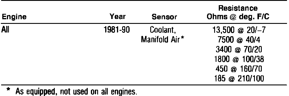 Coolant Temperature Sensor/Switch (For Computer): Specifications