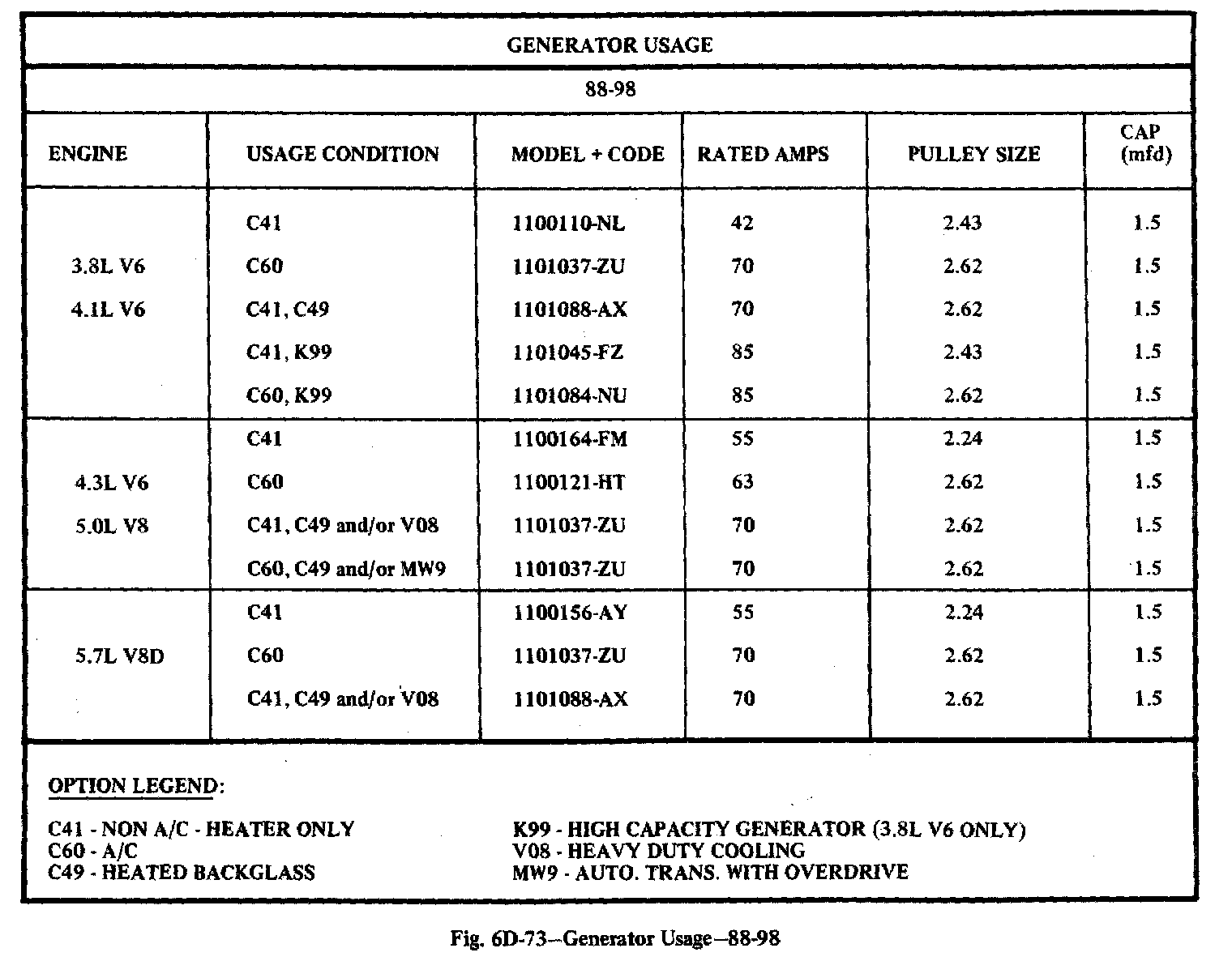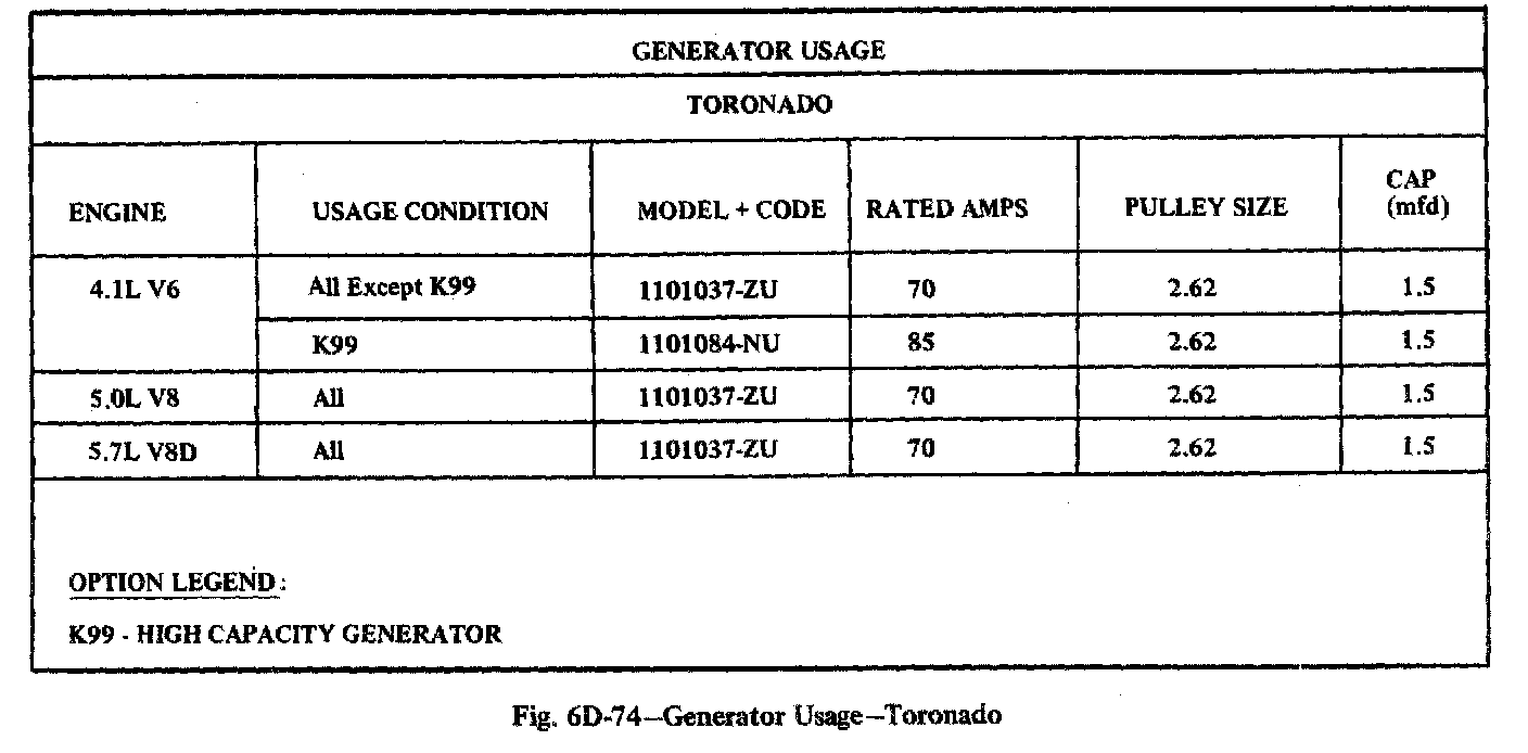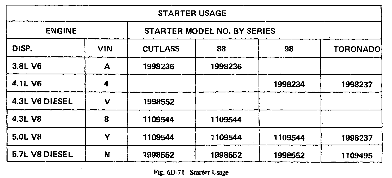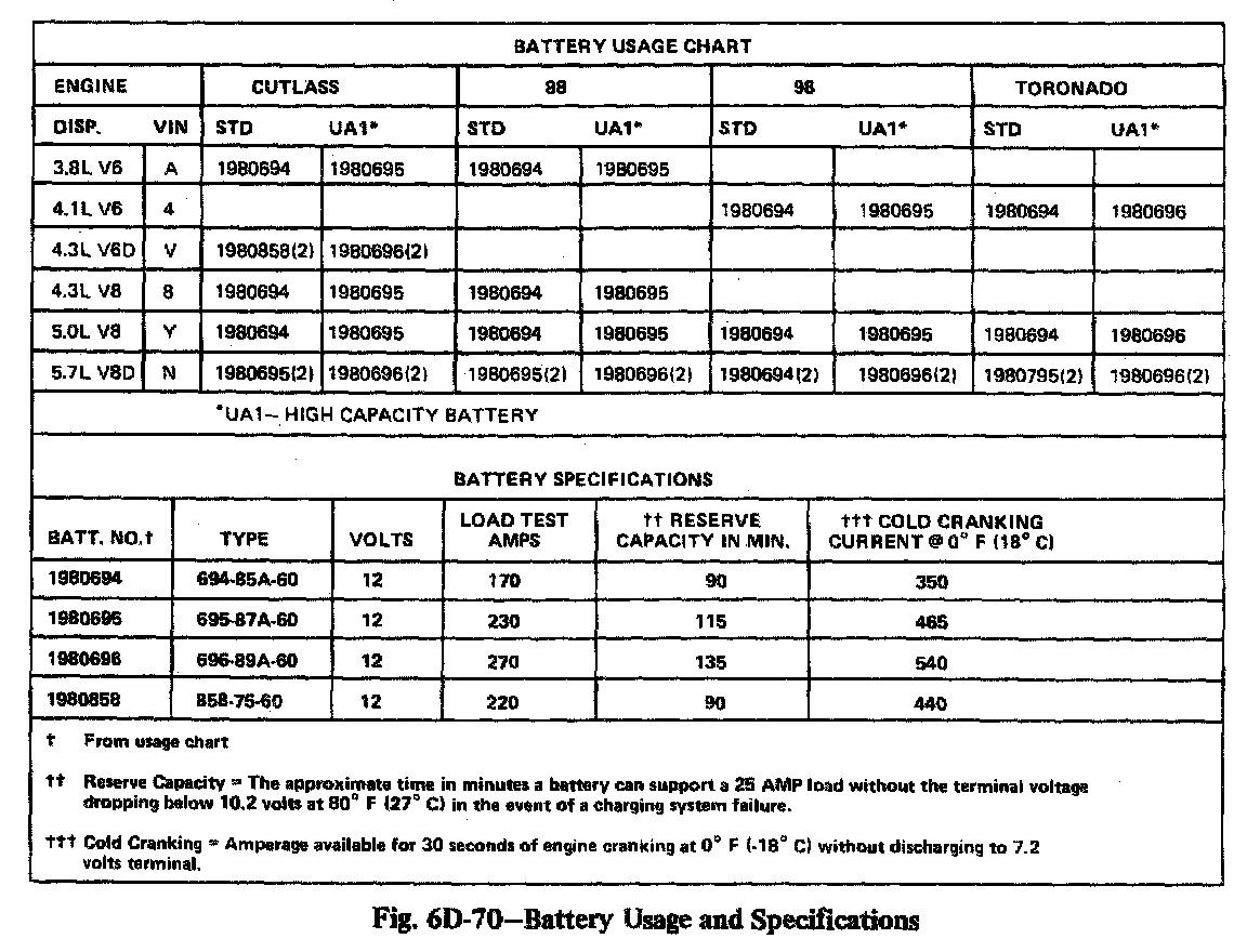 Home >> Oldsmobile >> 1982 >> Toronado V6-252 4.1L >> Repair and Diagnosis >> Starting and Charging >> Specifications