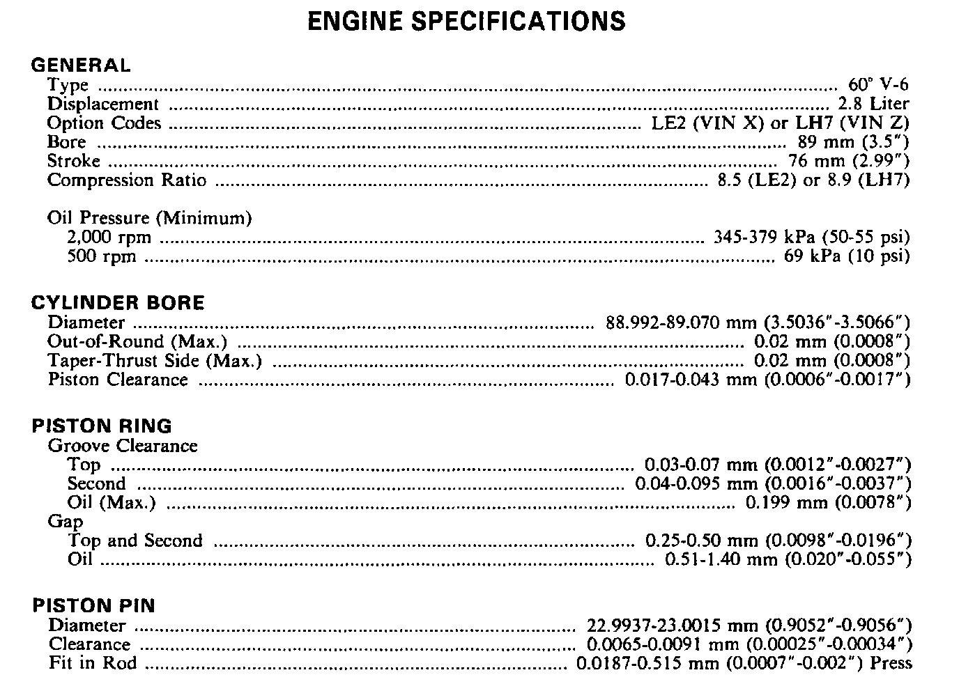 Continued Engine Specifications: