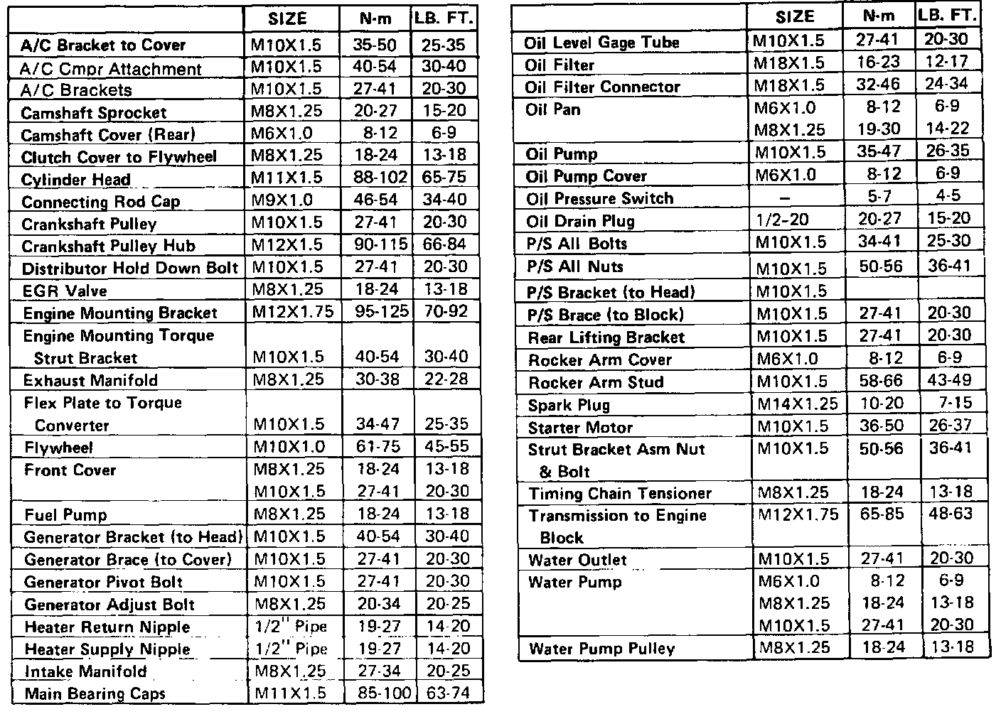 Torque Specifications: