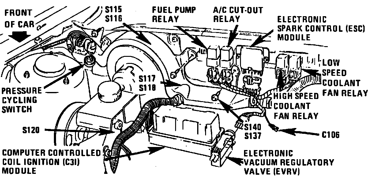 Center Front Of Dash, On Relay Bracket Next To Cooling Fan Temperature Relay