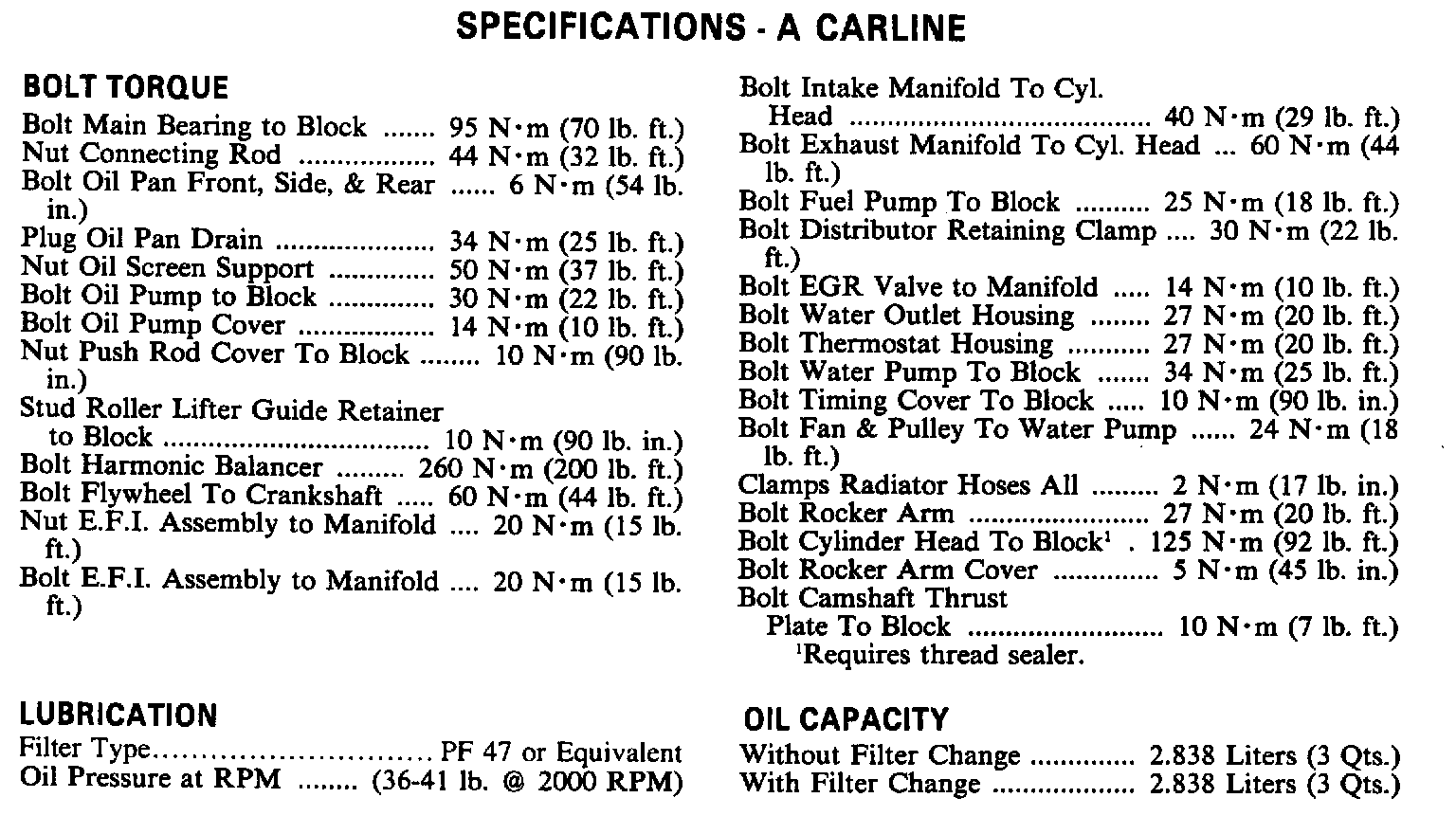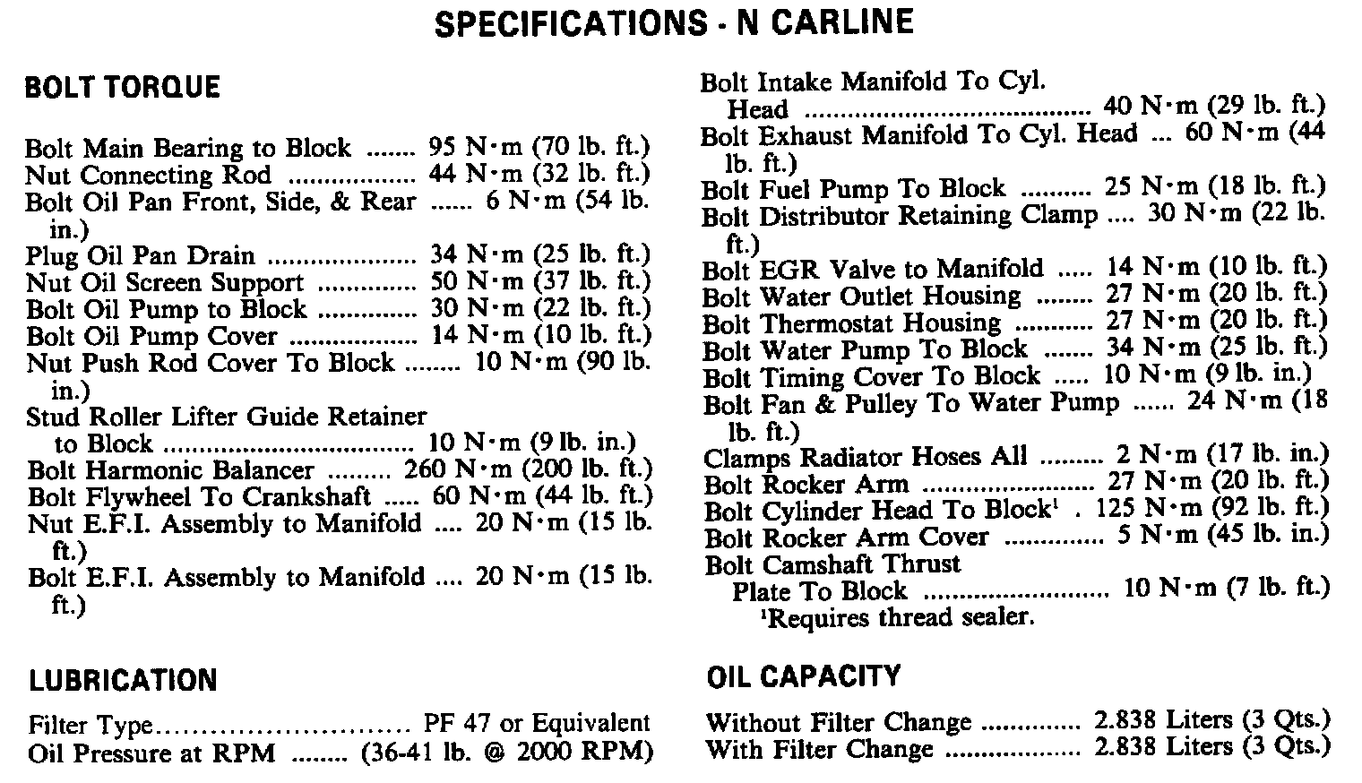 Torque Specifications N Carline: