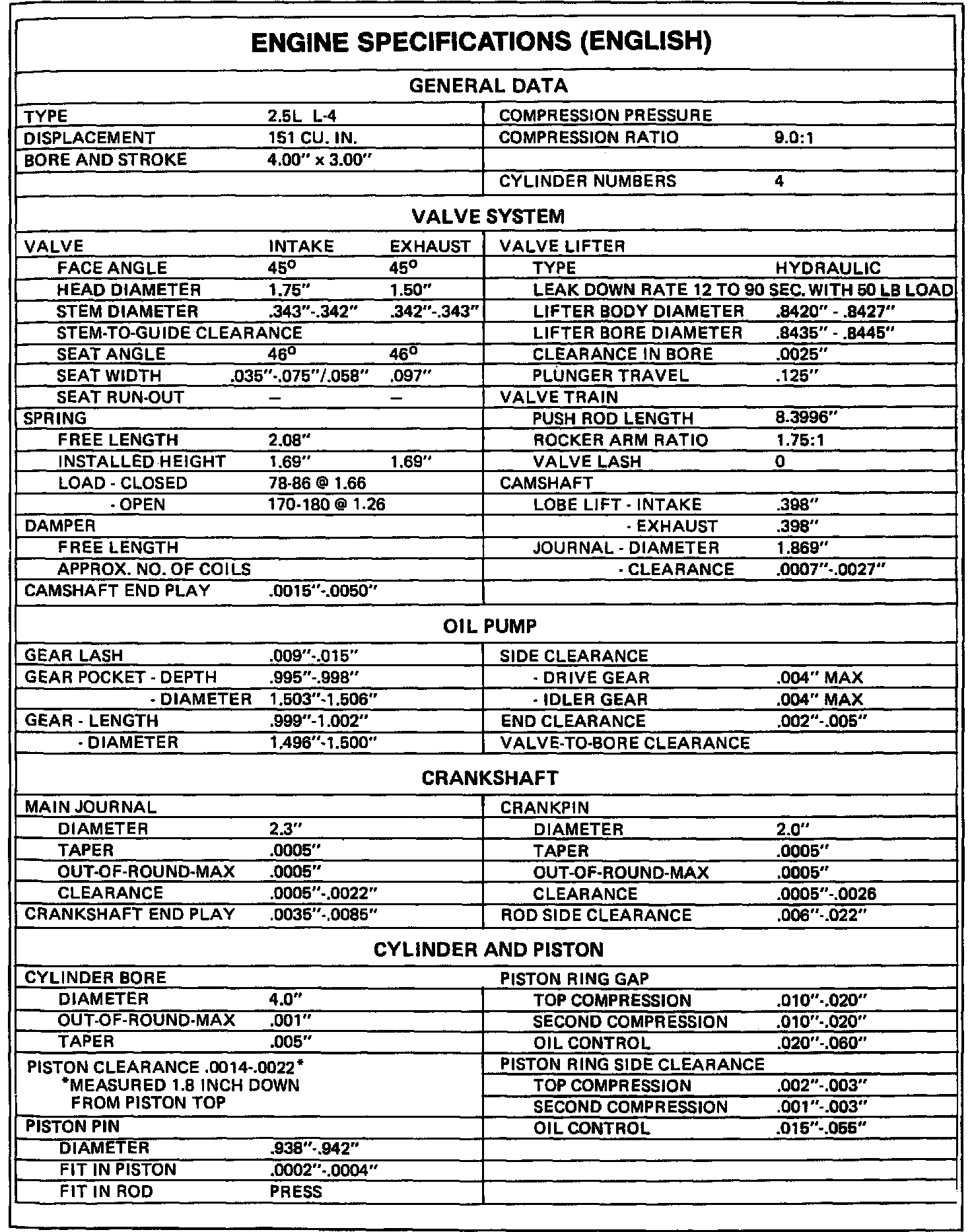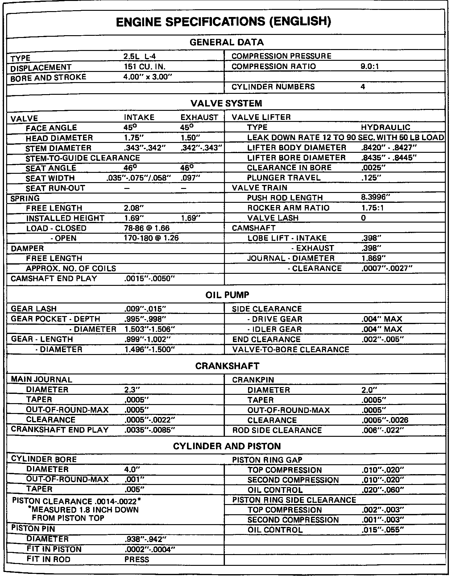 Engine Specifications: