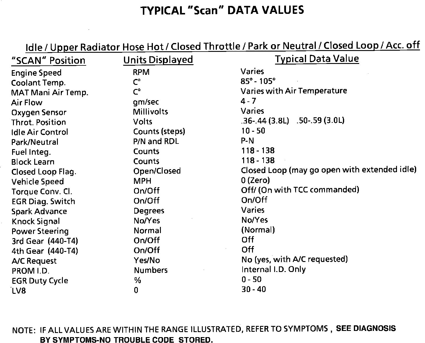 Typical Sensor "Scan" Data Values: