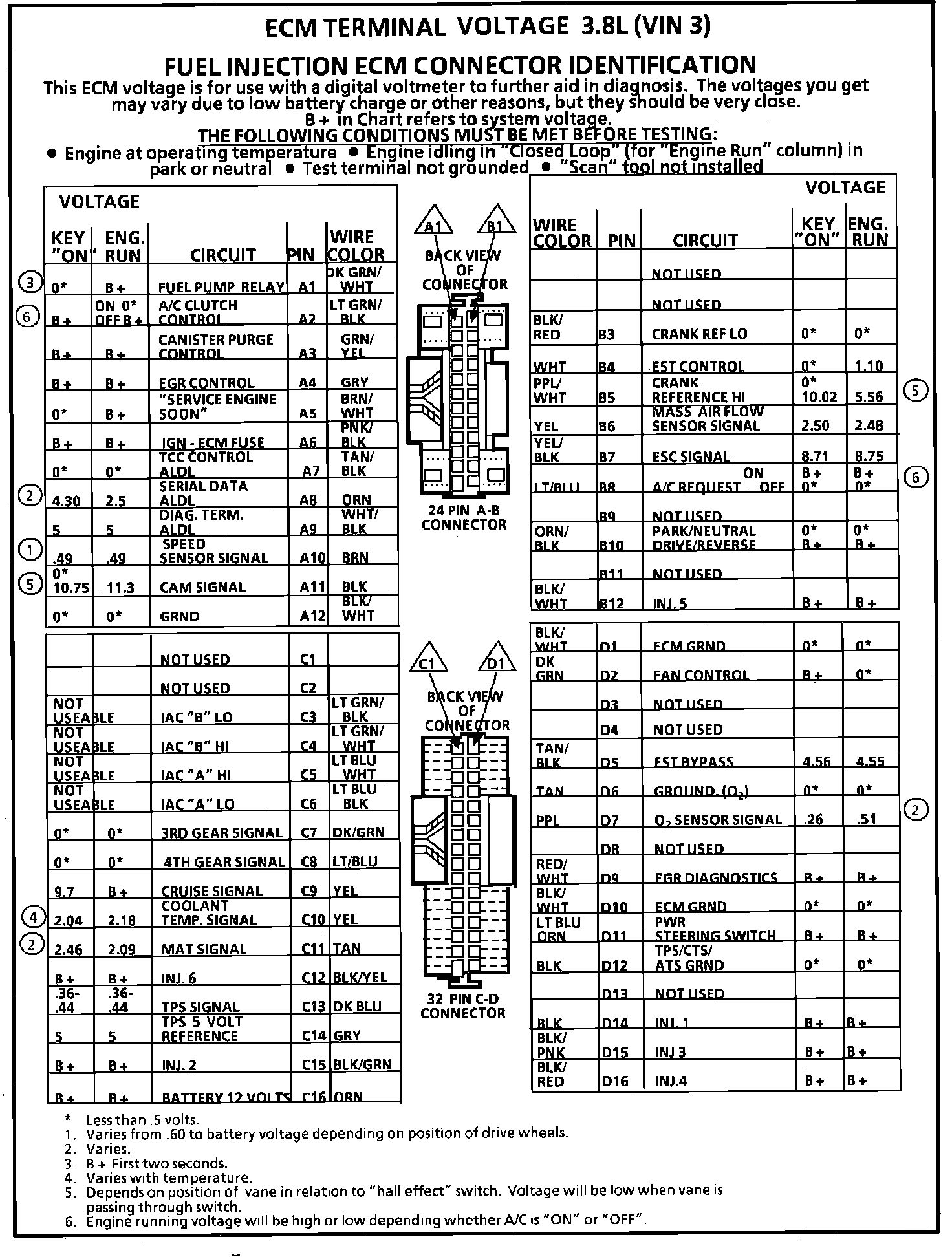 ECM Terminal ID and Voltage Specifications: