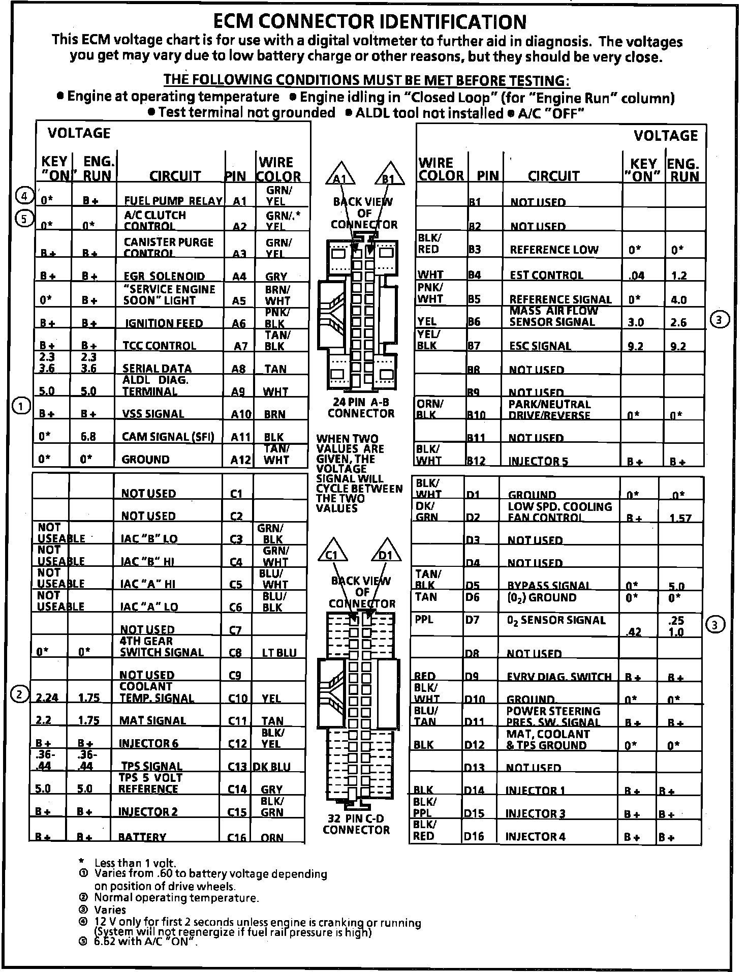 ECM Terminal Identification & Voltage Specifications: