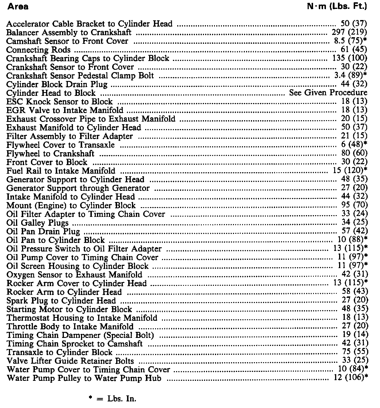 Torque Specifications: