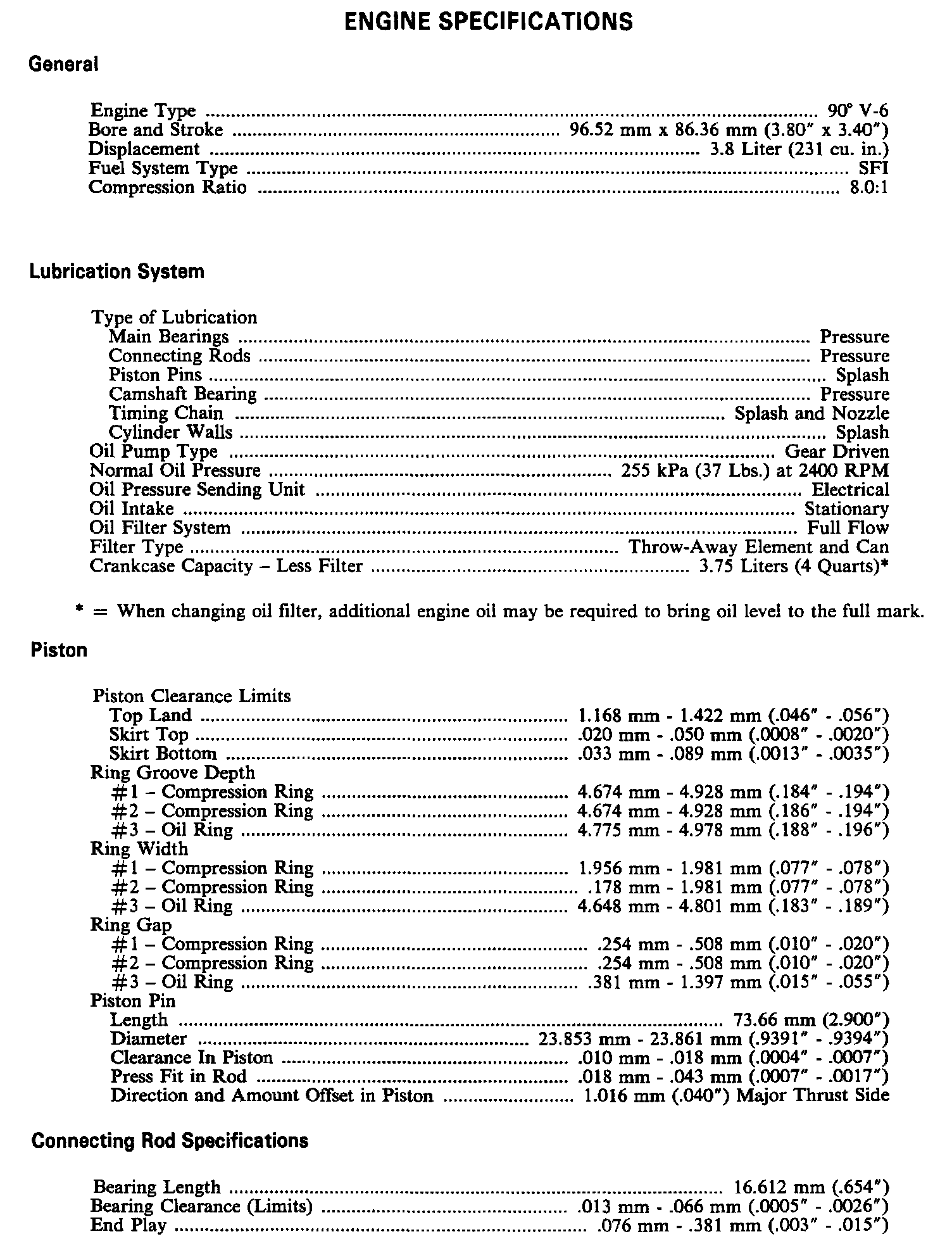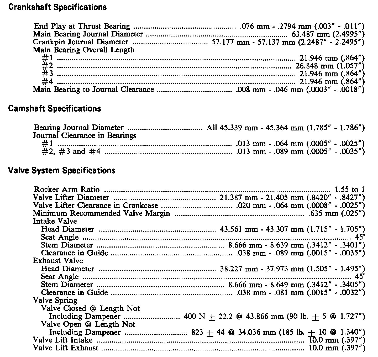 Continued Engine Specifications: