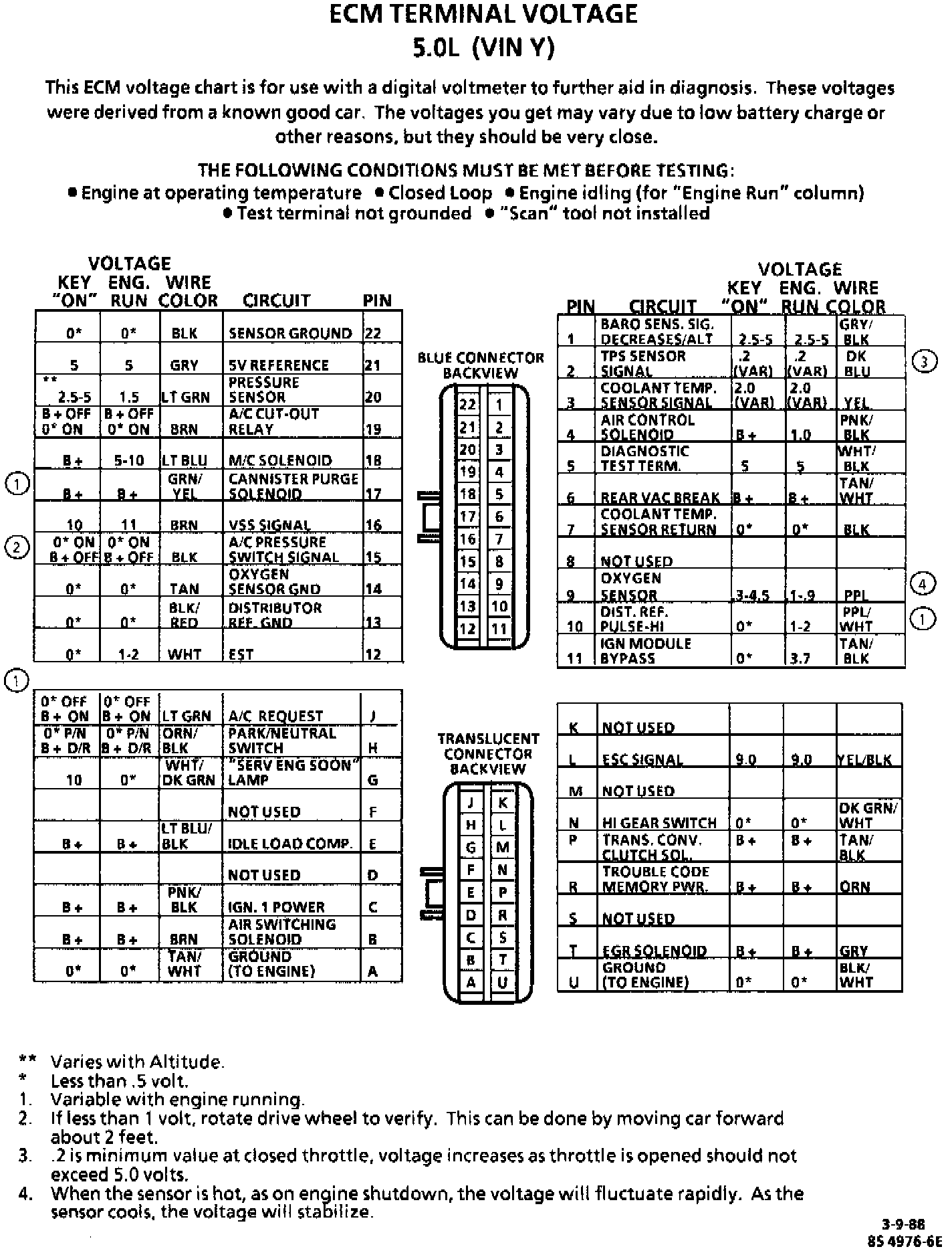 ECM Terminal Voltage 5.0L (VIN Y):