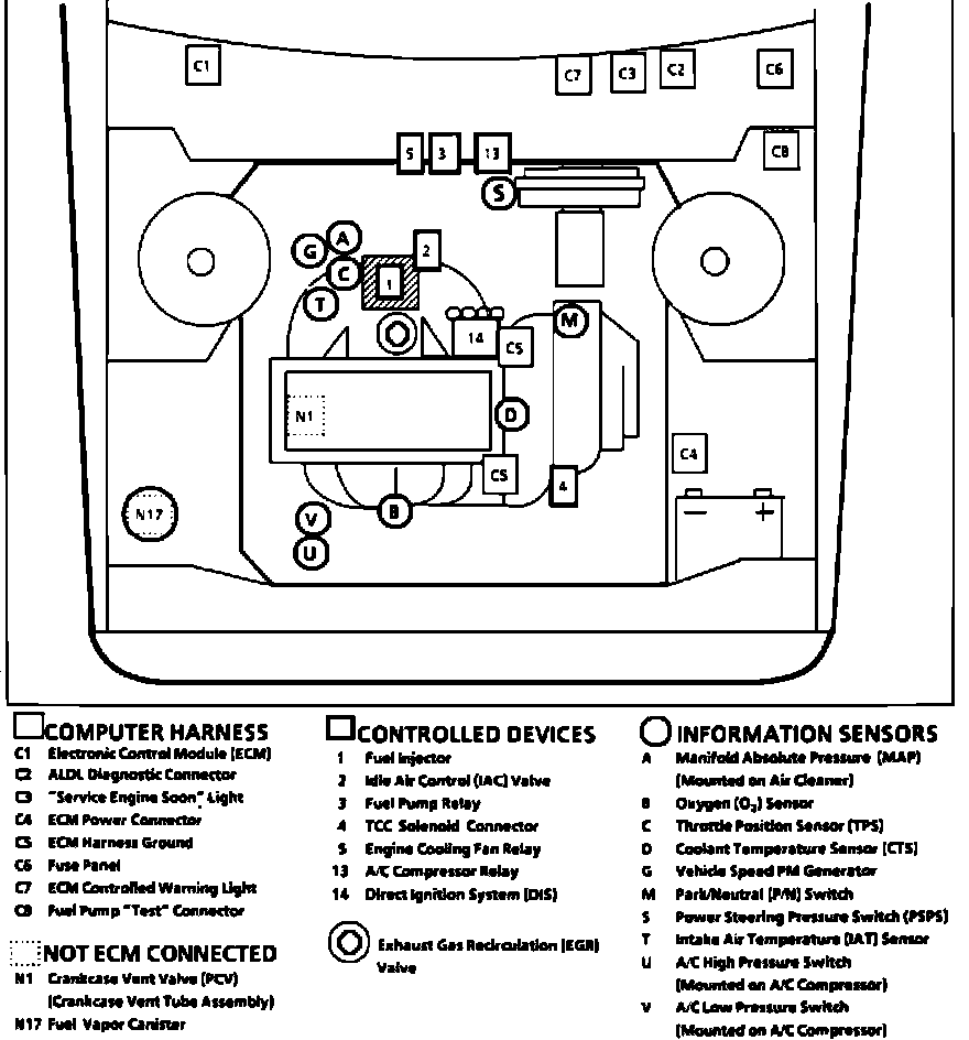 Home >> Oldsmobile >> 1991 >> Calais V6-3300 3.3L >> Repair and Diagnosis >> Powertrain Management >> Computers and Control Systems >> Engine Control Module >> Locations