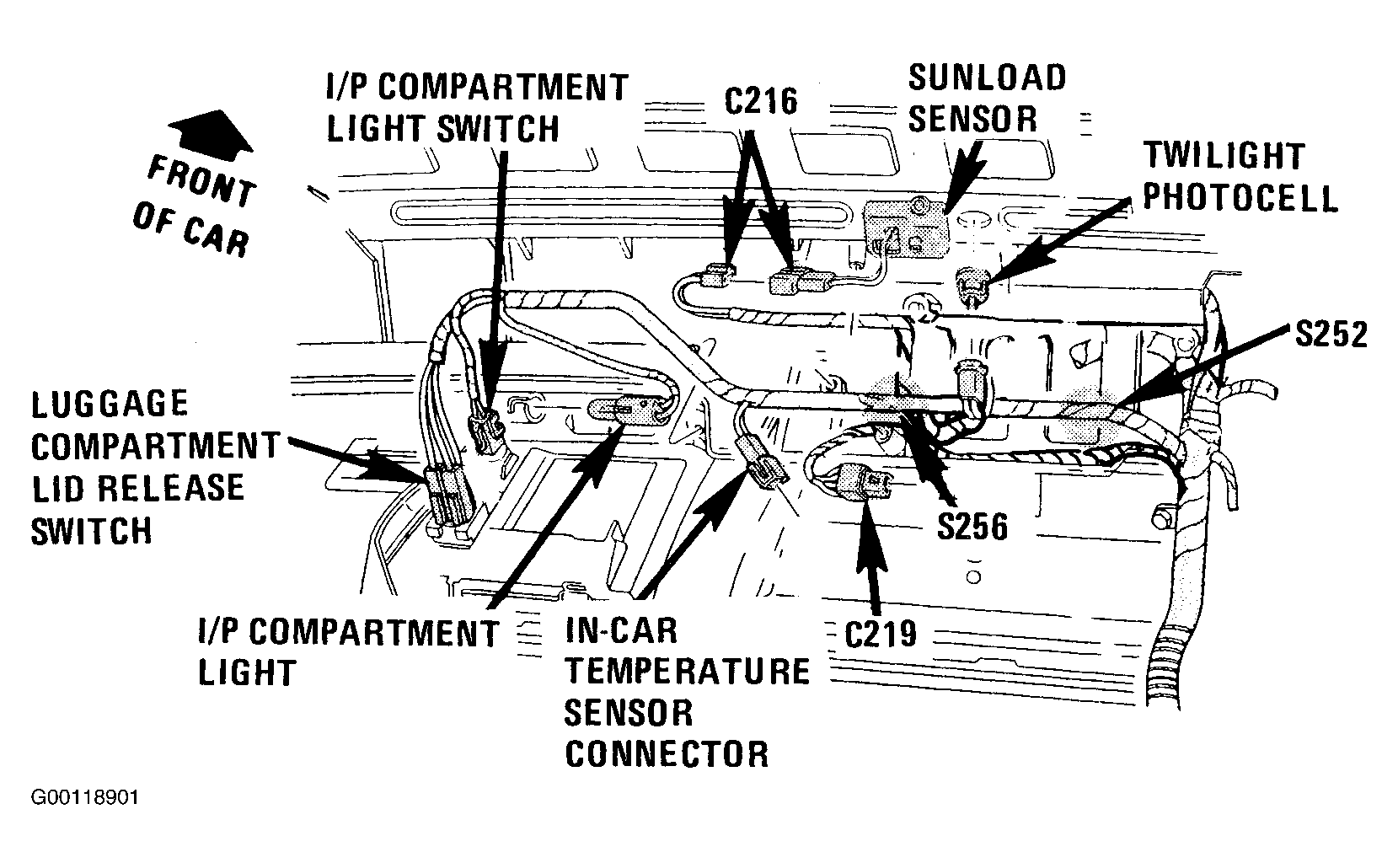 | S256 | Instrument Panel Harness, Behind Center Of Instrument Panel. See Fig 5 . |